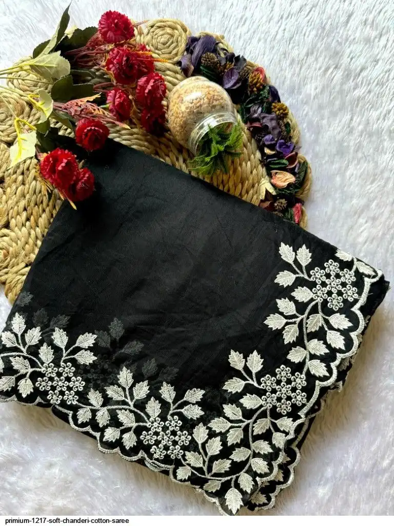 Primium Soft Chanderi Cotton saree with Multy Thread Work And ScalpCutwork Border