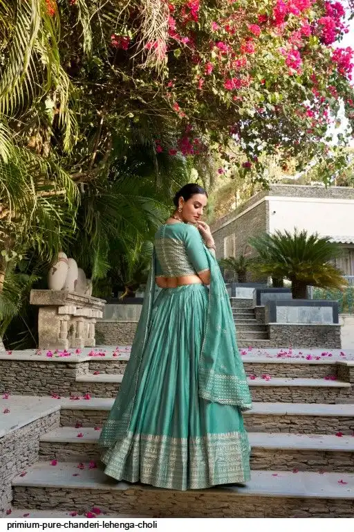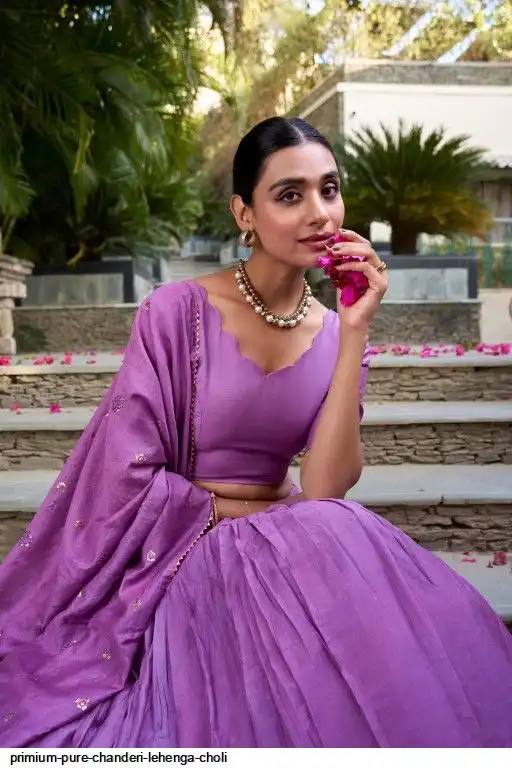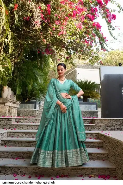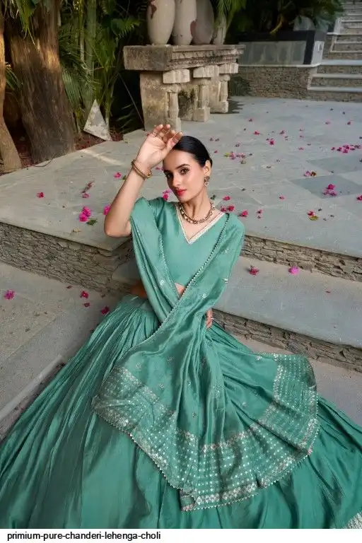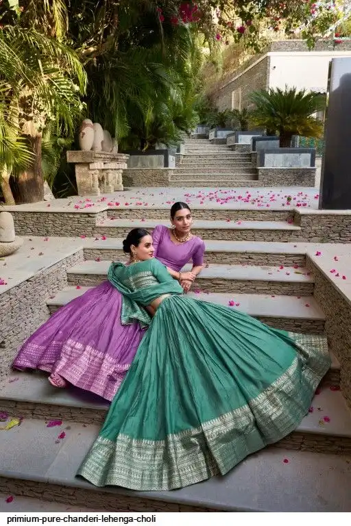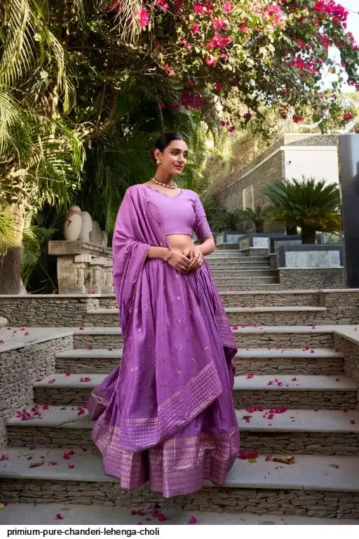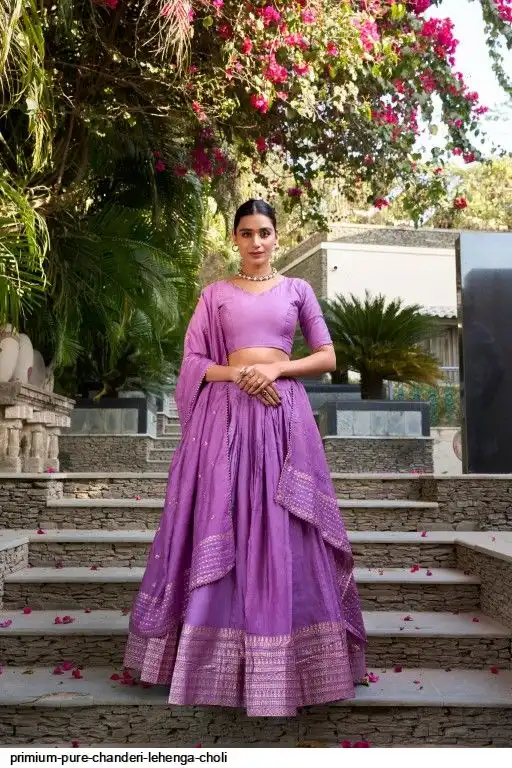 Crafted for Grace and Beauty: Pure Chanderi Plain Lehenga with Intricate Zari Work Border, Accompanied by Sequin Embellished Dupatta