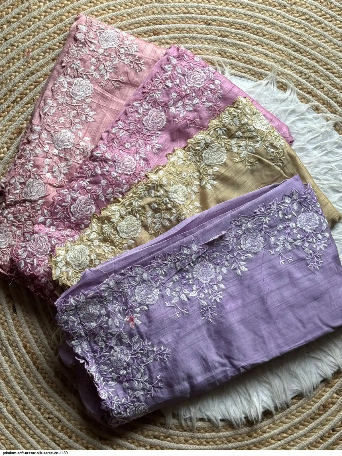 Primium Soft Tussar Silk with Multy Color Thread Work And Cutwork Border