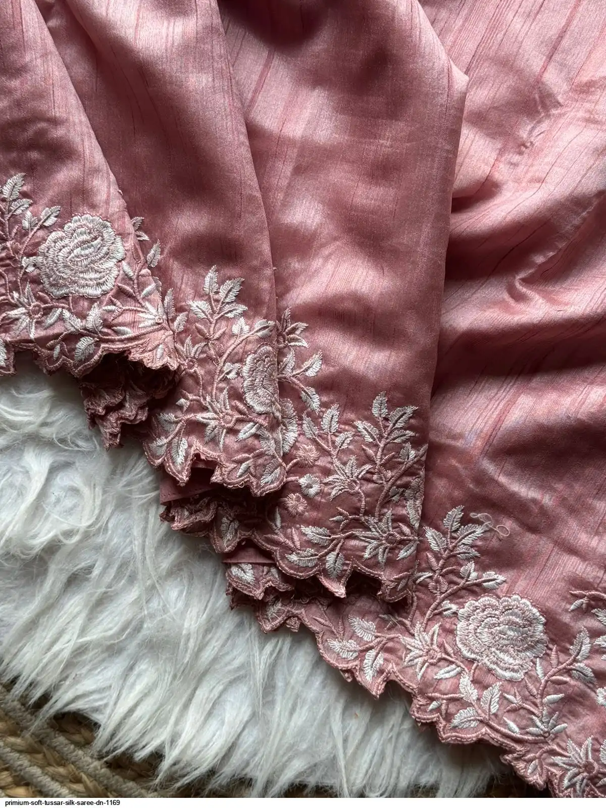 Primium Soft Tussar Silk with Multy Color Thread Work And Cutwork Border