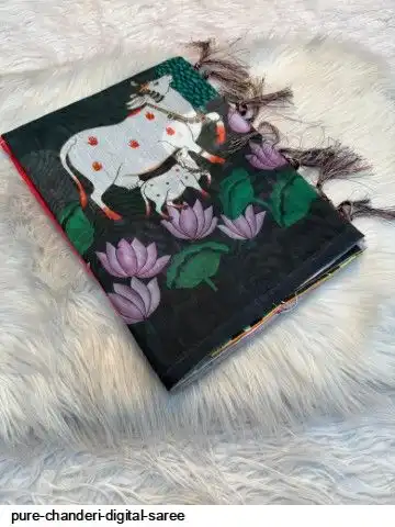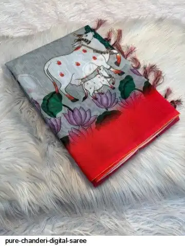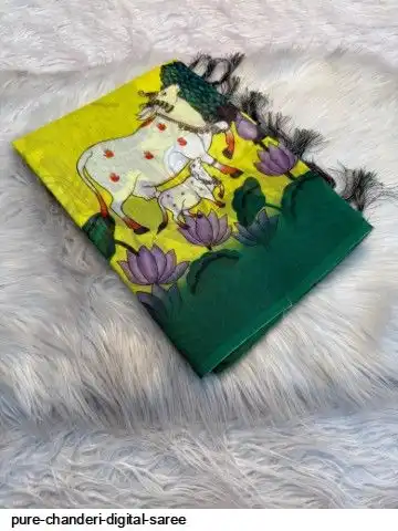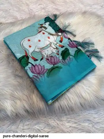 Pure soft chanderi digital Saree With digital running Blouse