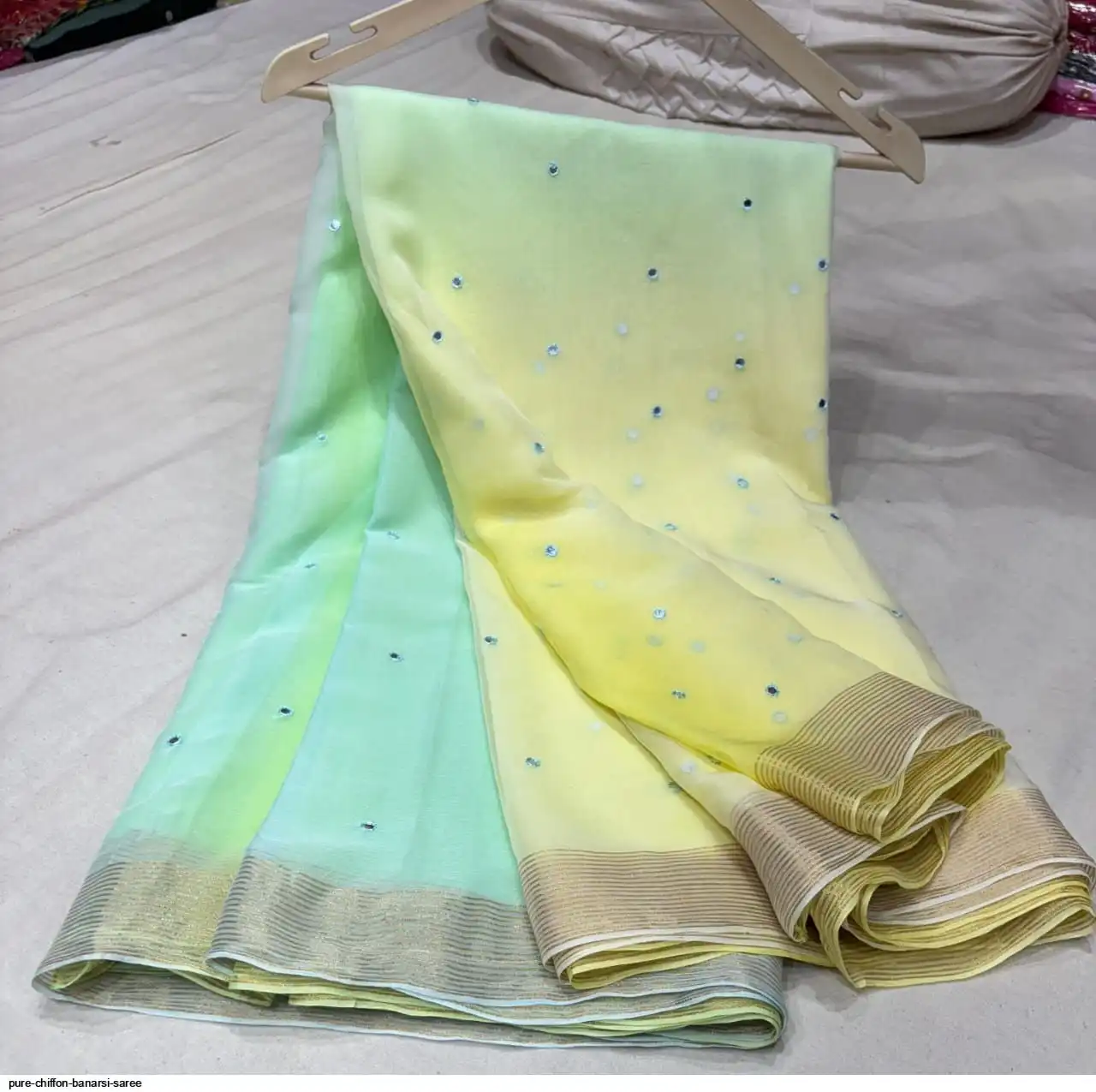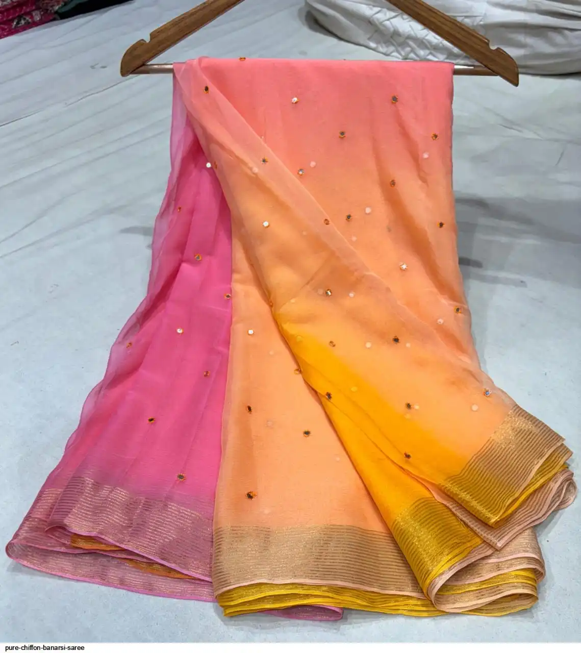 Pure chiffon saree with banarsi boder Malti daing with beautifull saree