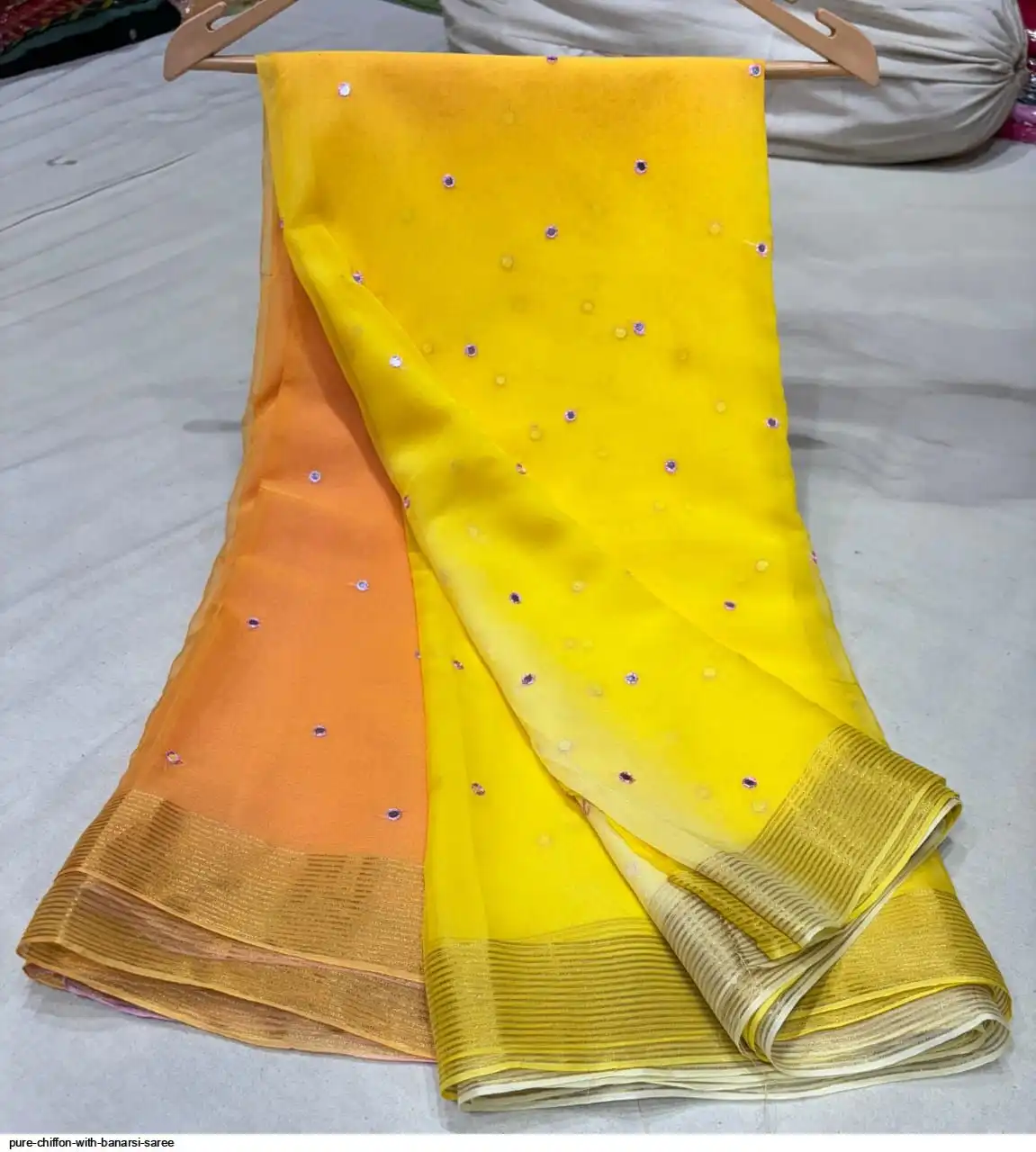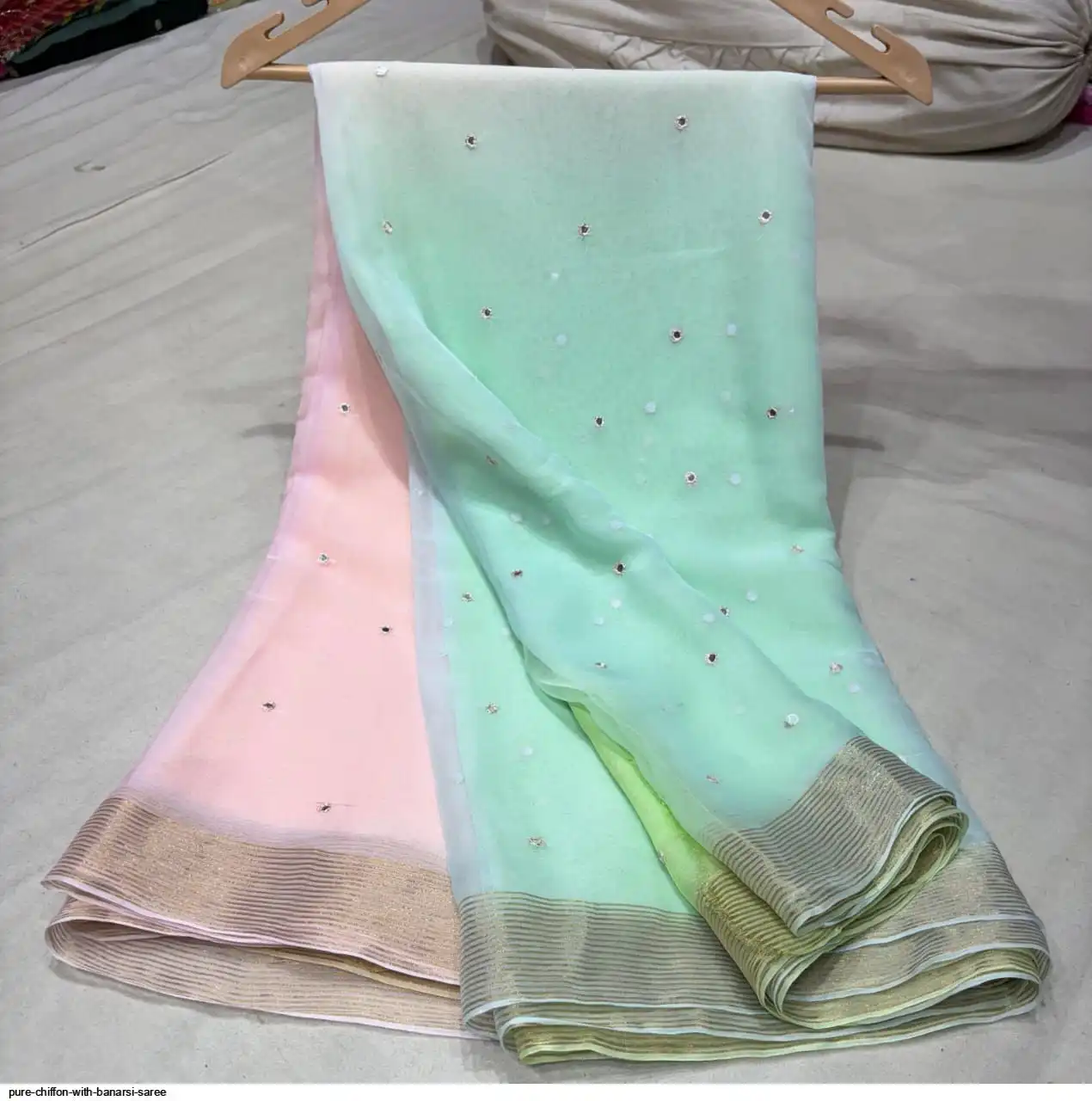 Pure chiffon saree with banarsi boder Malti daing with beautifull saree