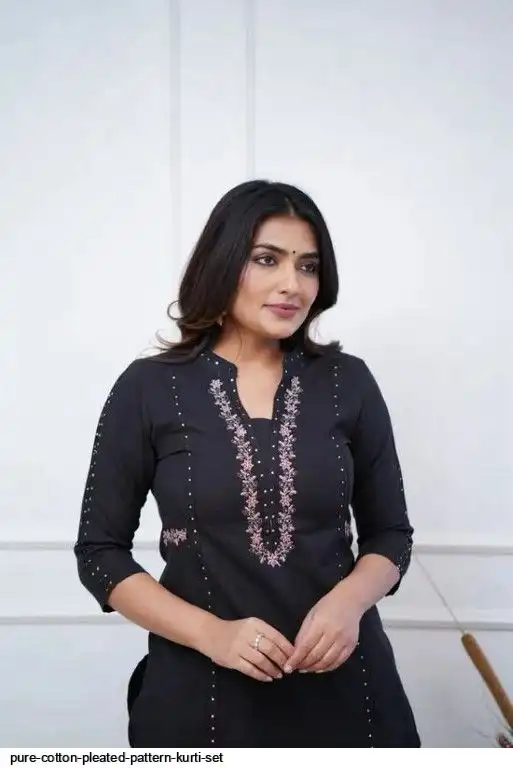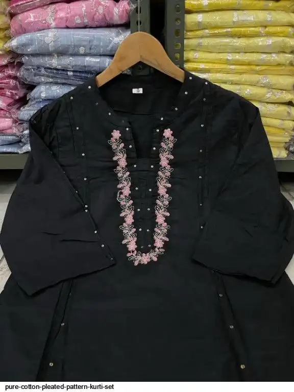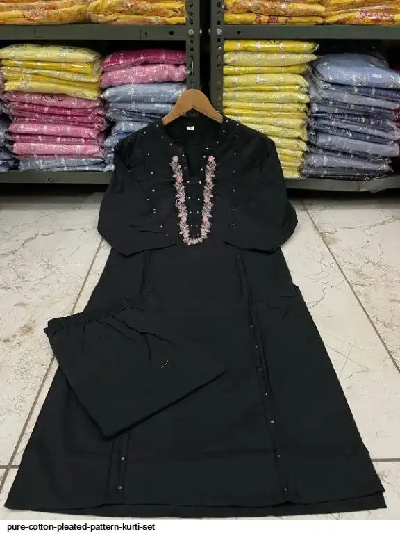 Pure cotton pleated pattern kurta with heavy EMBROIDERY panels and sequence work..