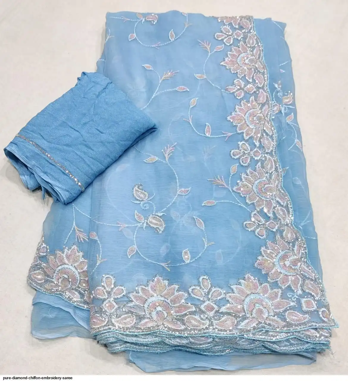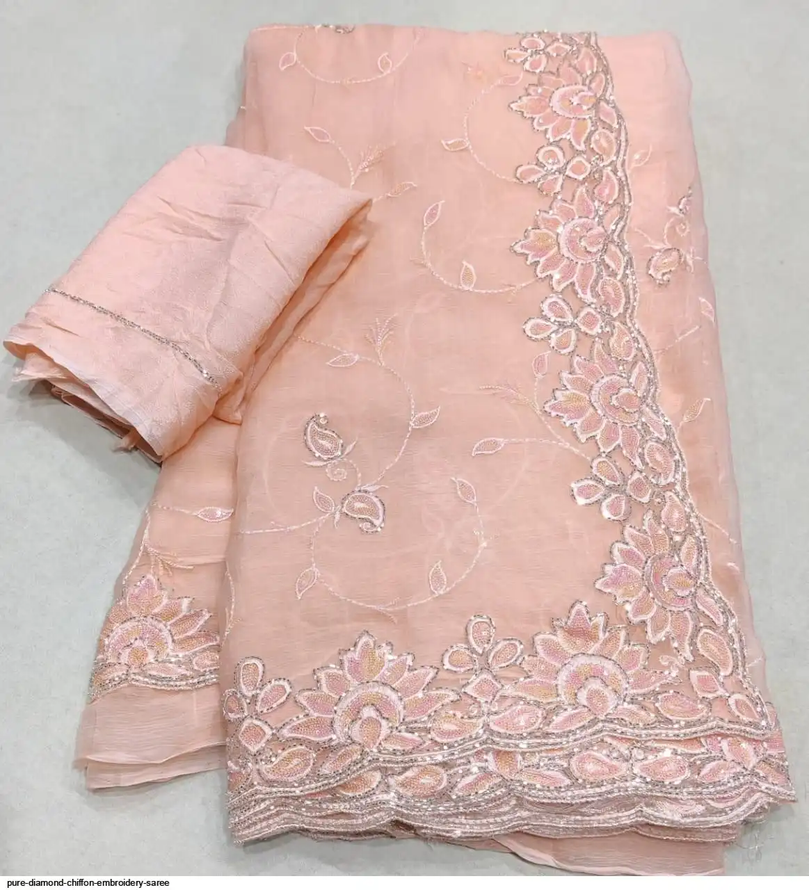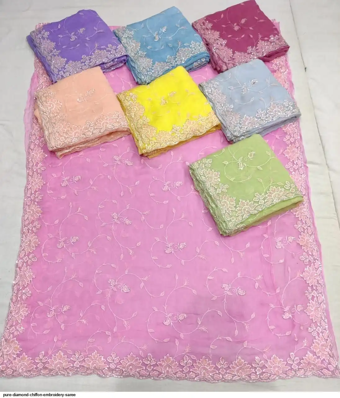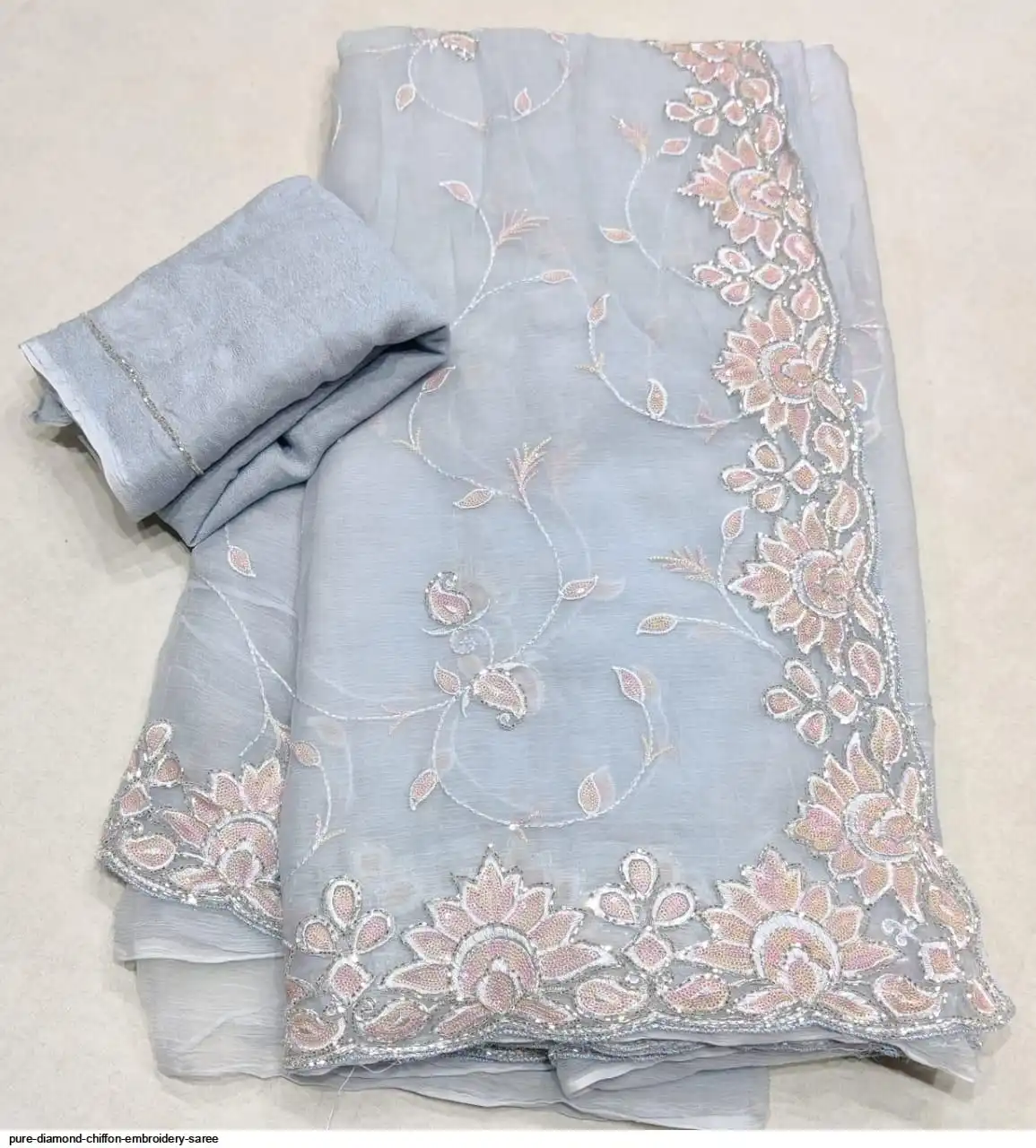 Pure diamond chiffon fabric with beautiful shikvensh Embroidery