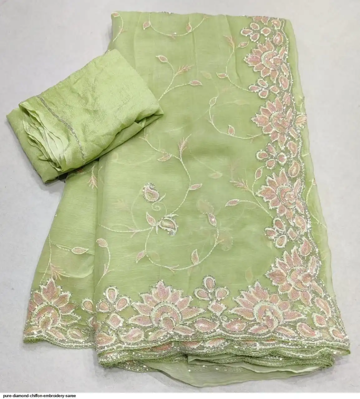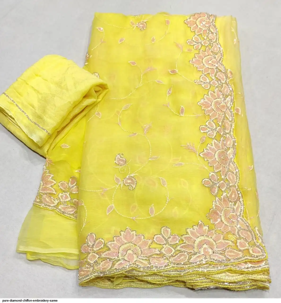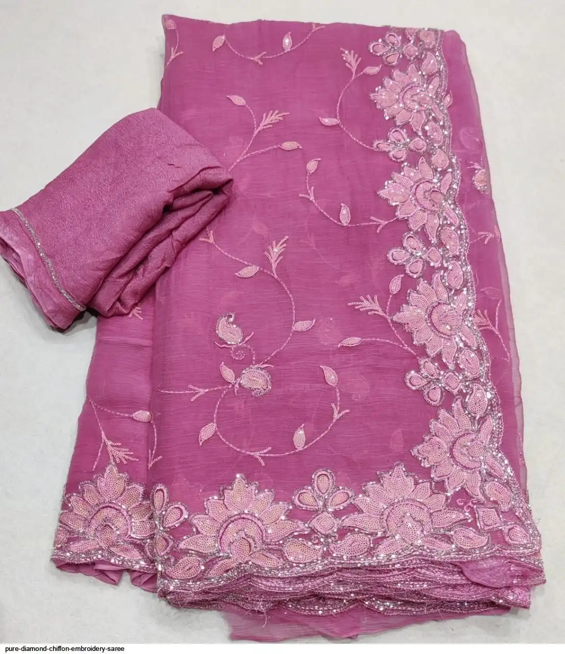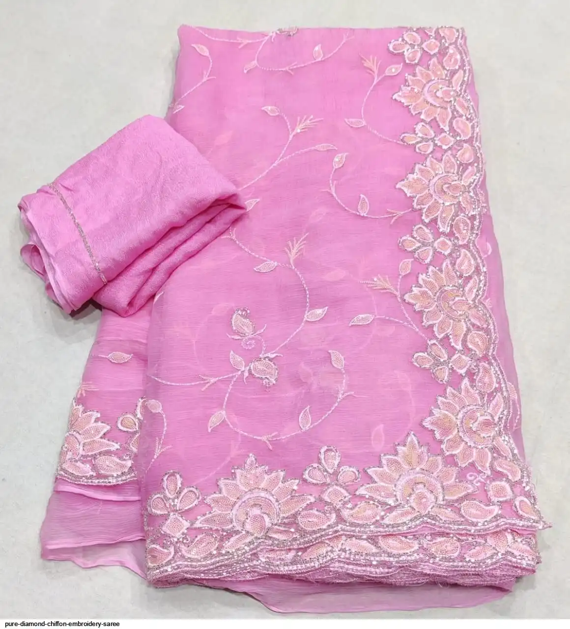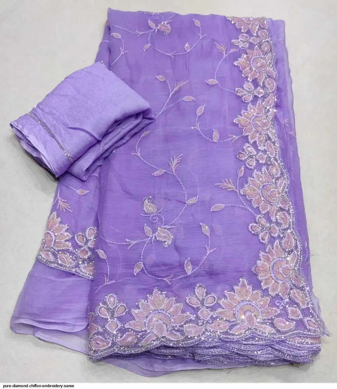 Pure diamond chiffon fabric with beautiful shikvensh Embroidery