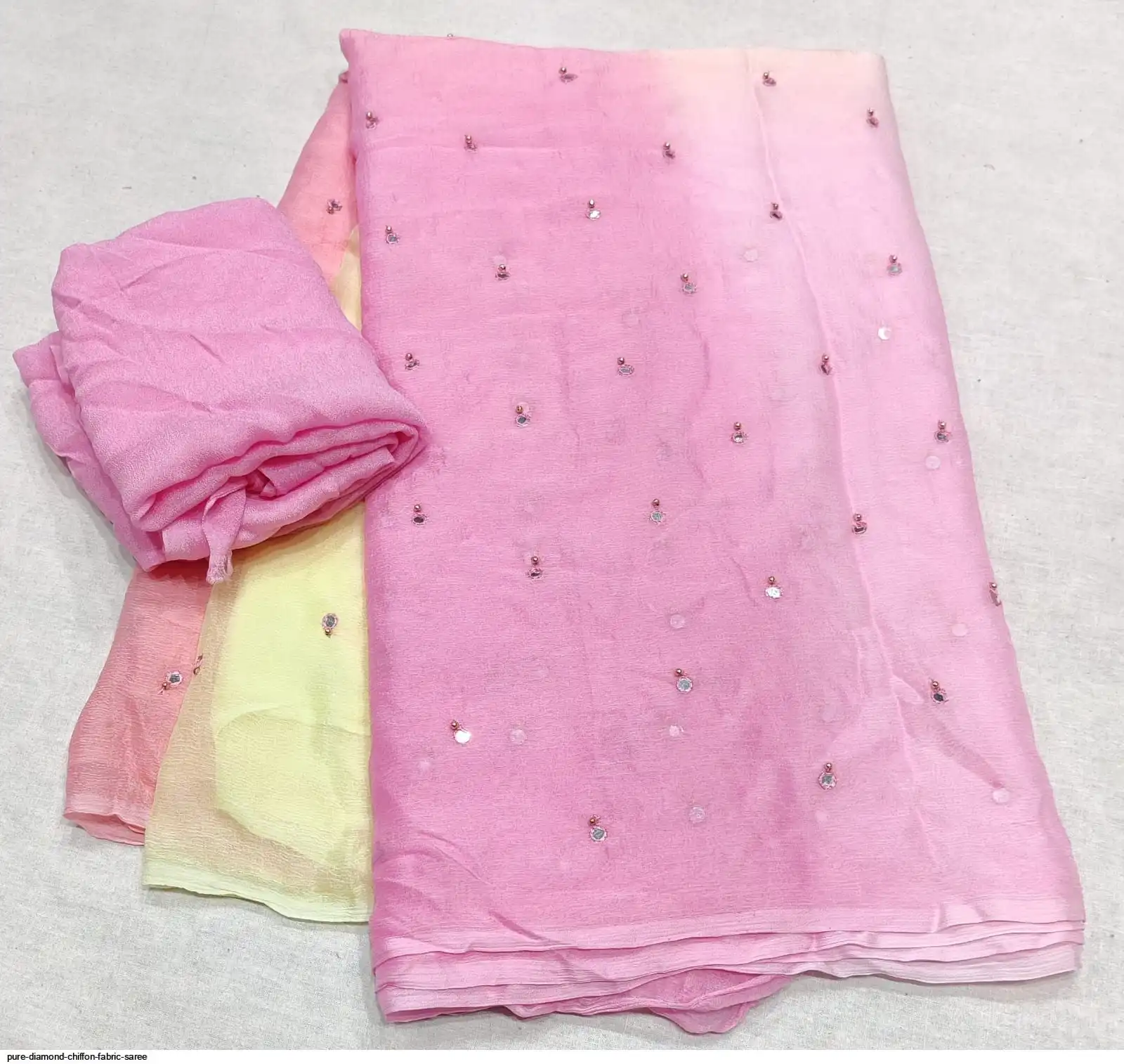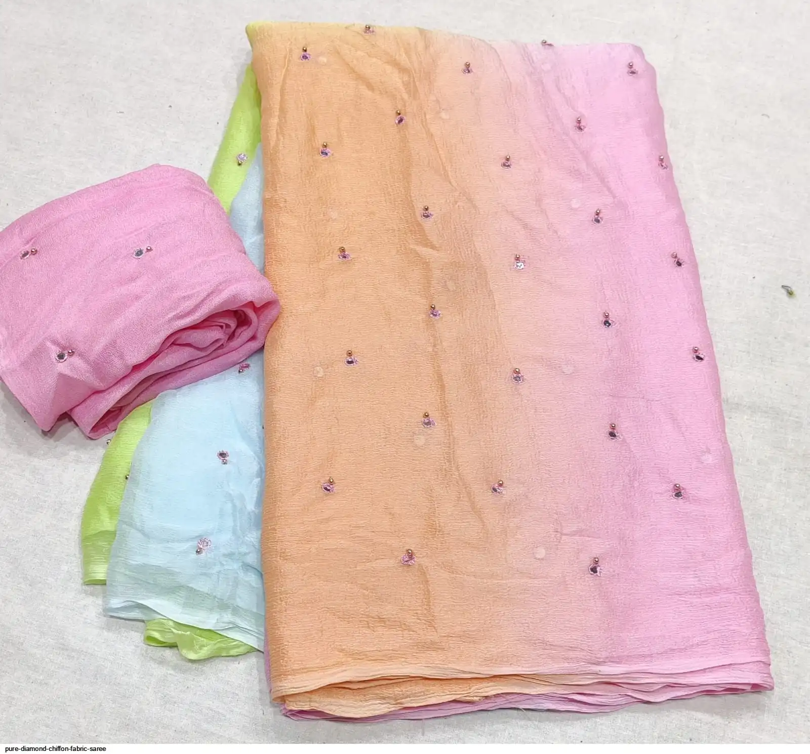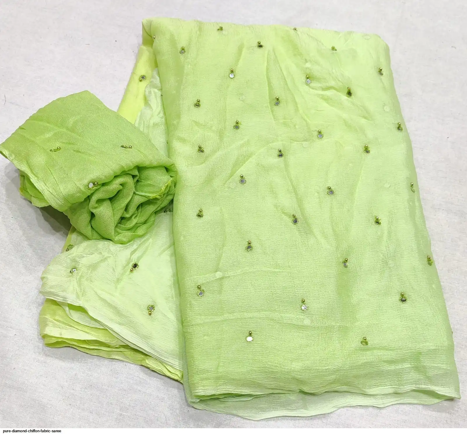 Pure diamond chiffon fabric with beautiful daing with mirror work saree raning all colour new work Quality super