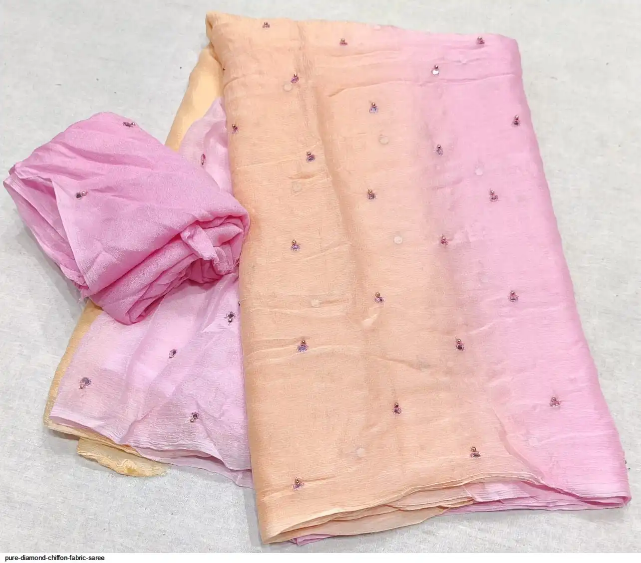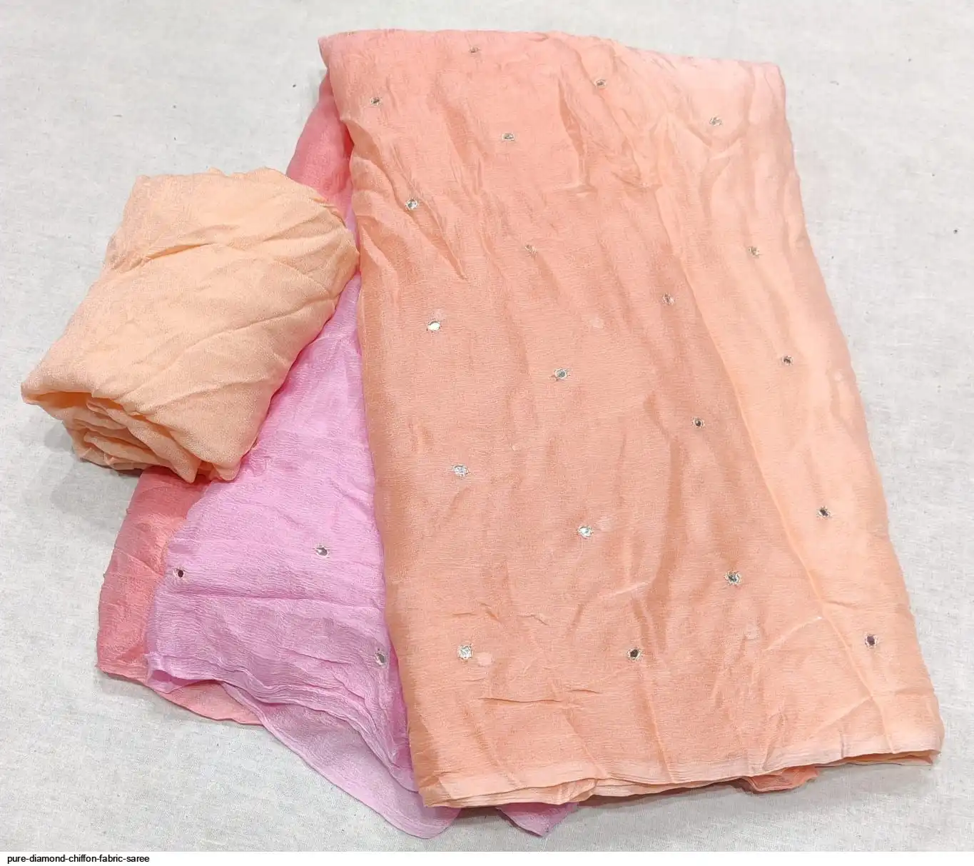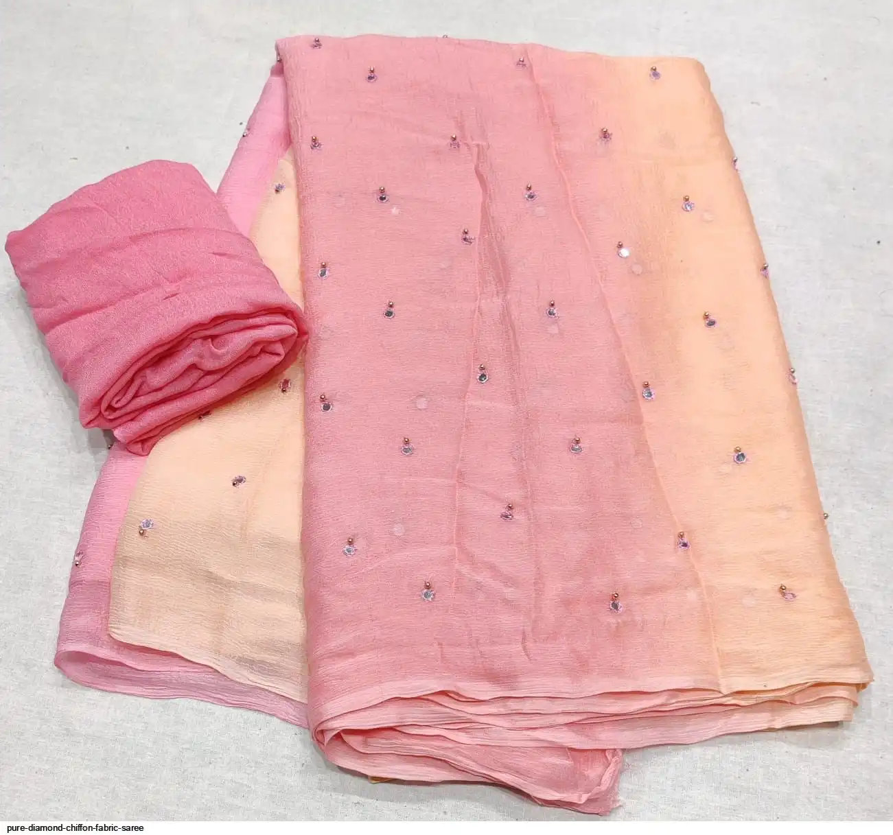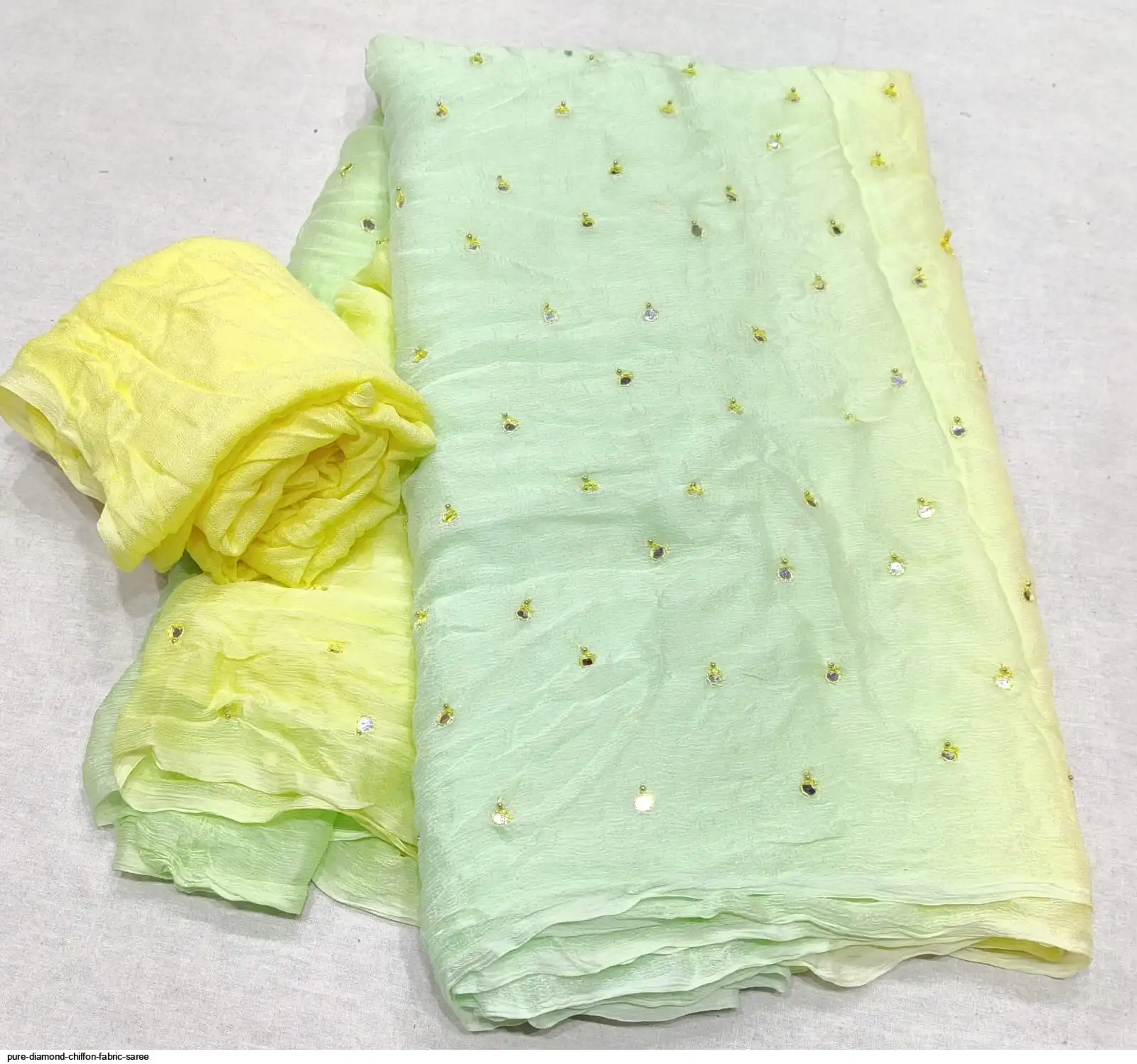 Pure diamond chiffon fabric with beautiful daing with mirror work saree raning all colour new work Quality super