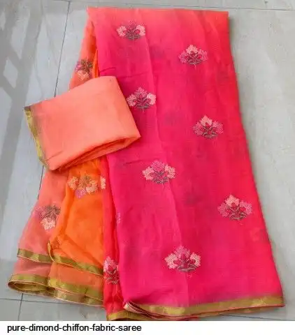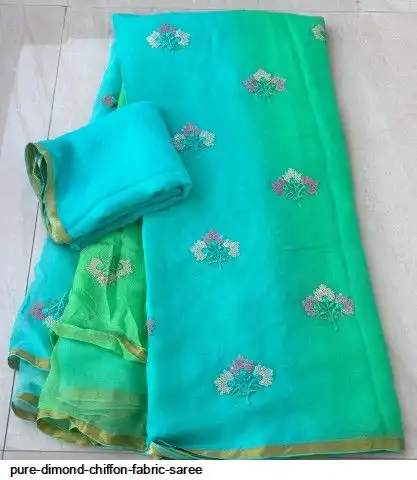 Pure Dimond chiffon fabric with amrodri tared butti beautiful all over shik butti saree so awesome looking saree New arrival