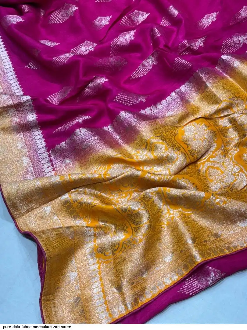Pure dola fabric with beautiful meenakari zari weaving all over and osm work same fabric