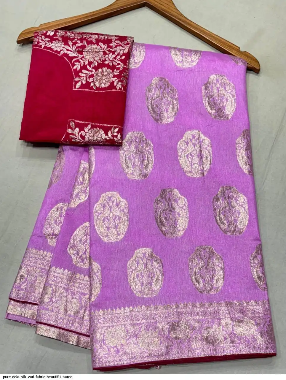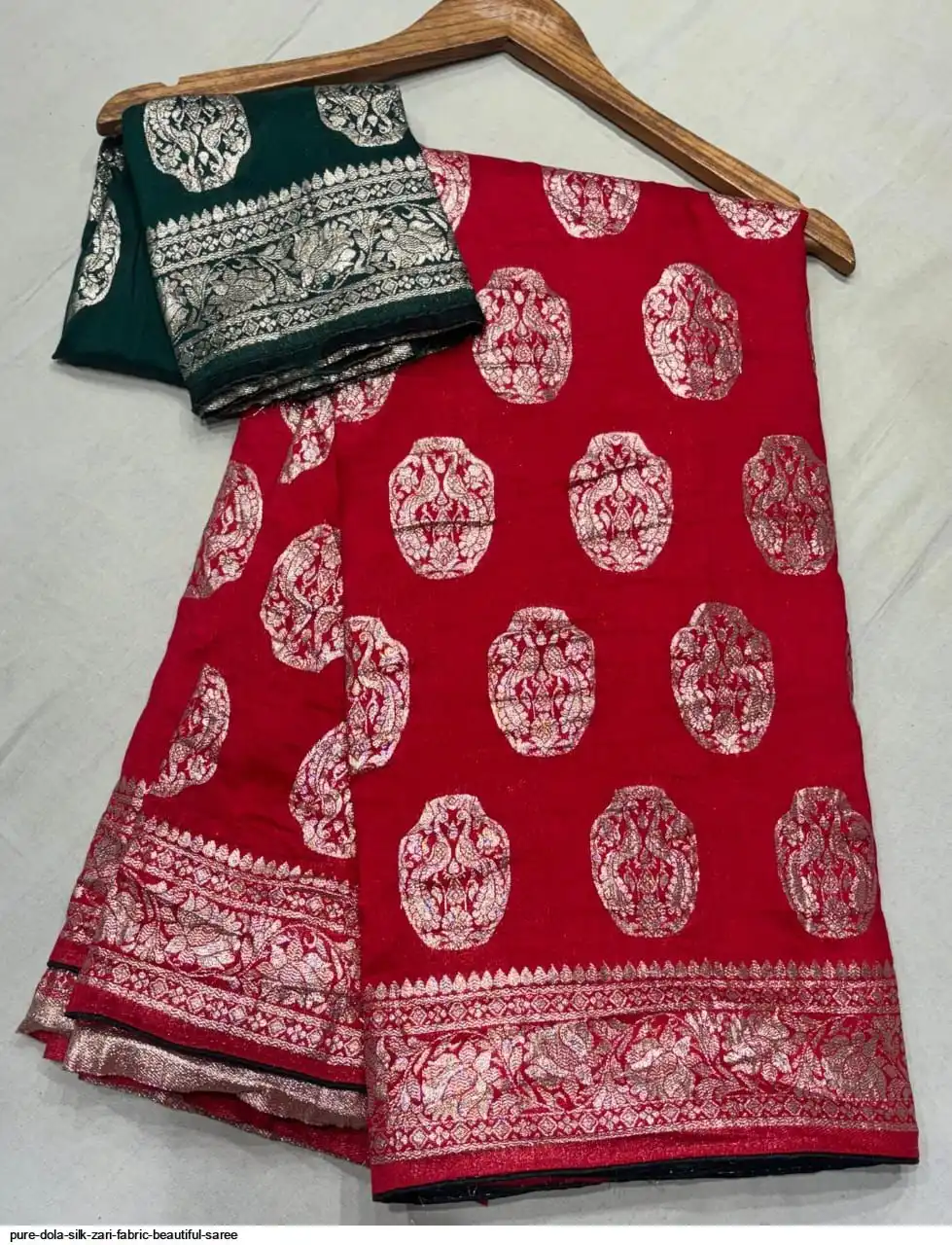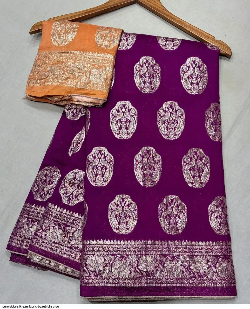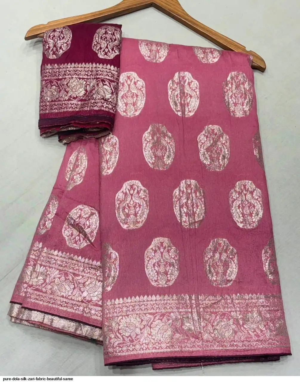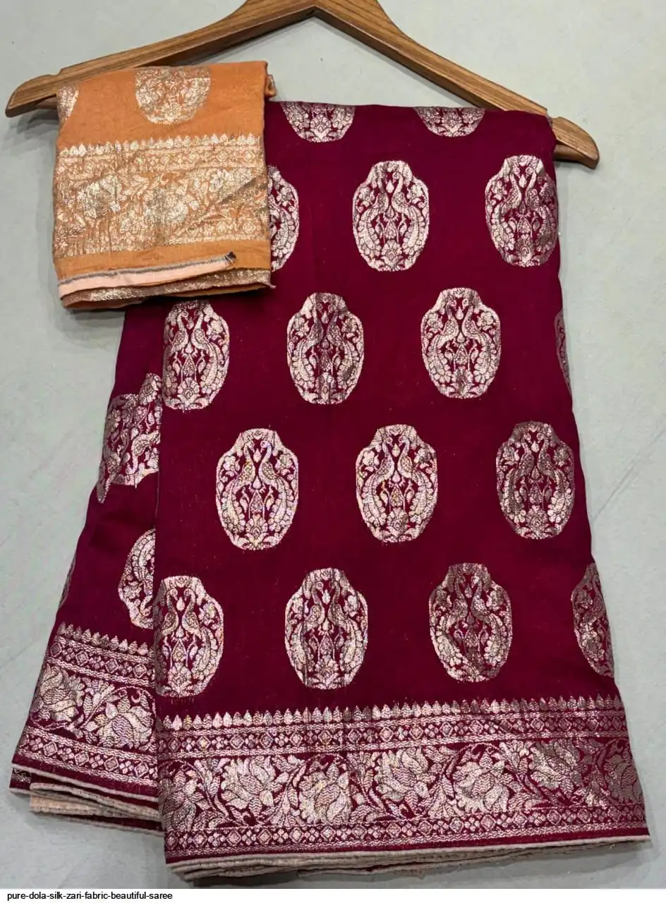 Pure dola silk zari fabric with beautiful mx zari all over Saree