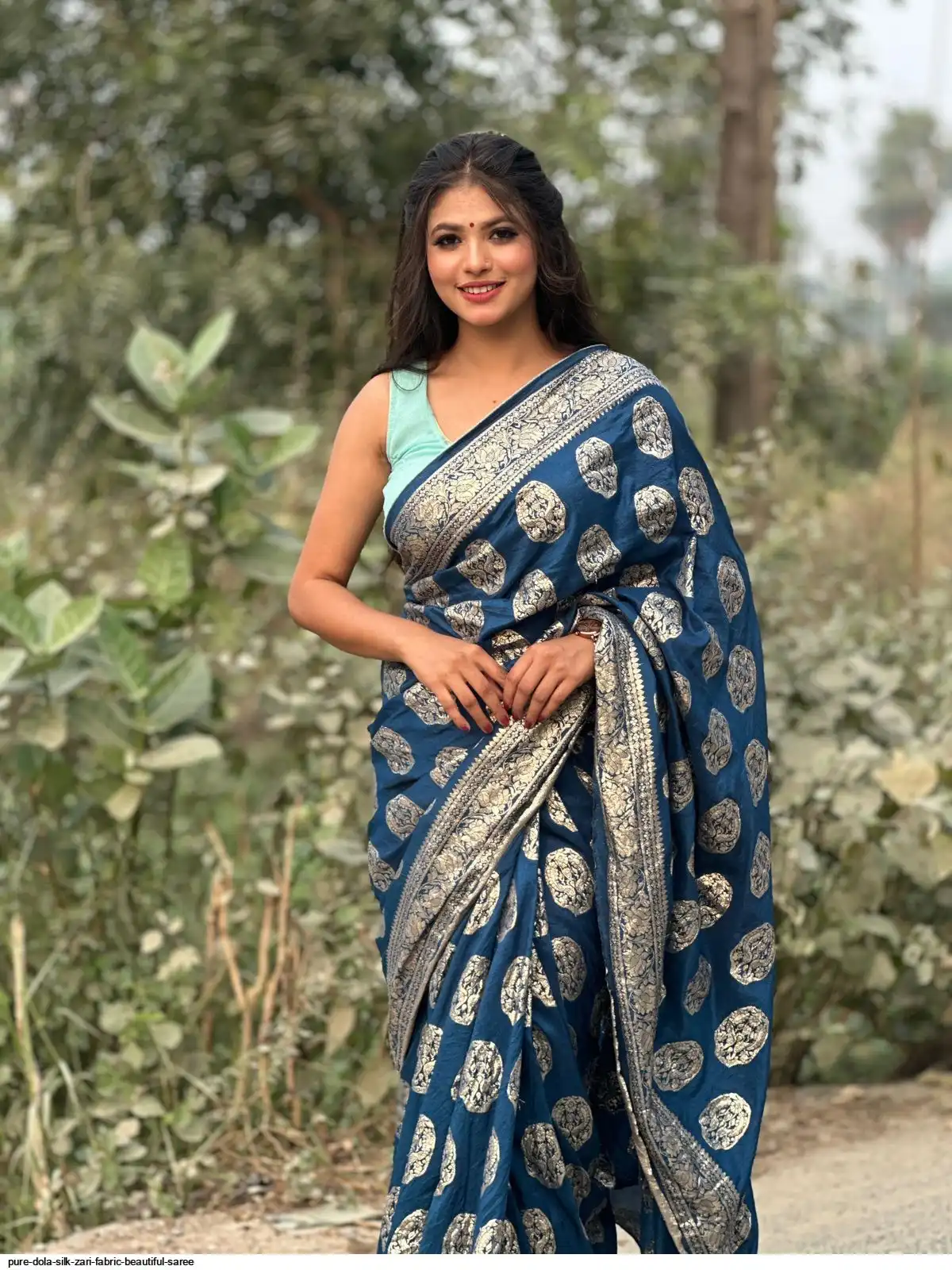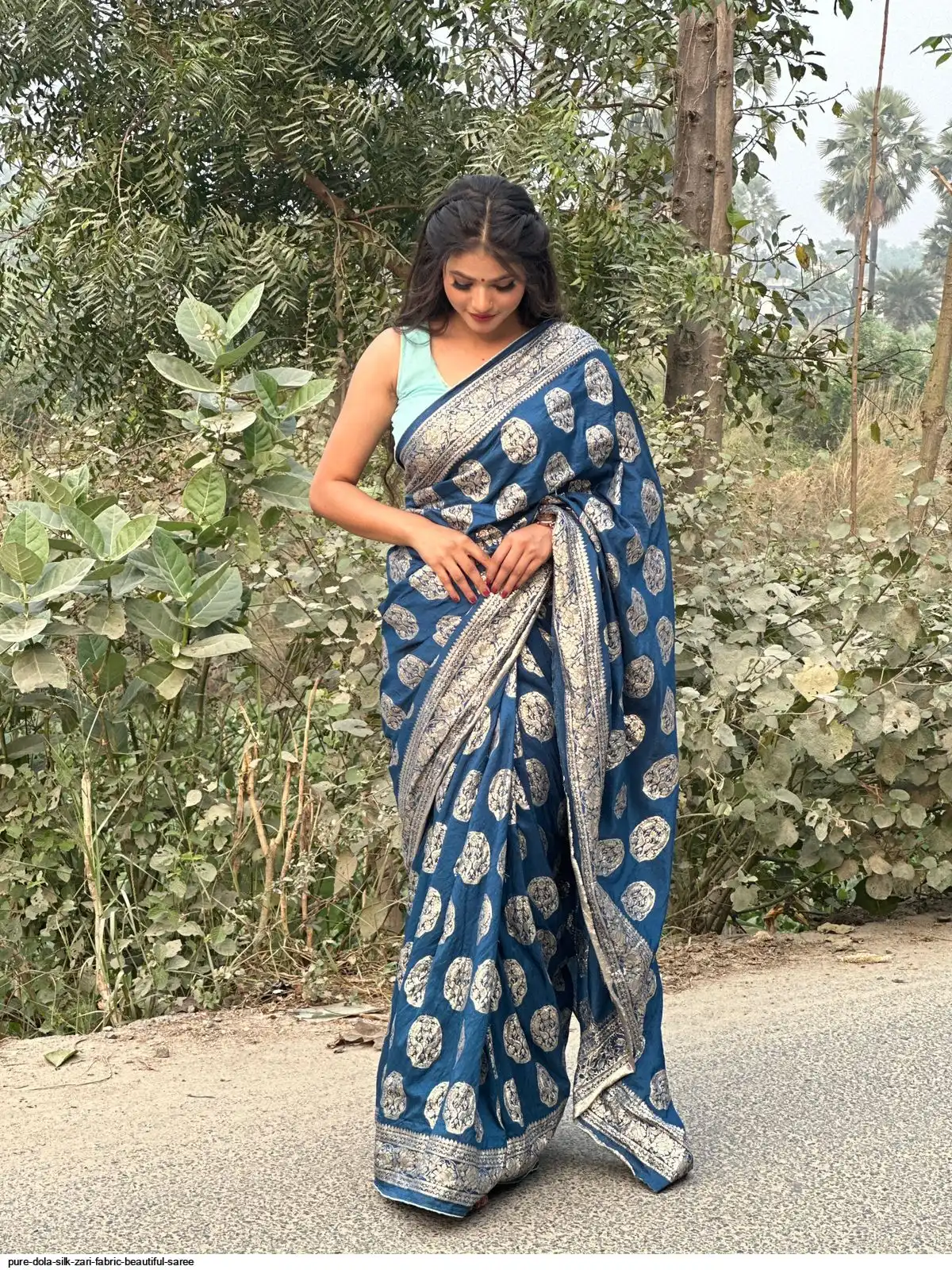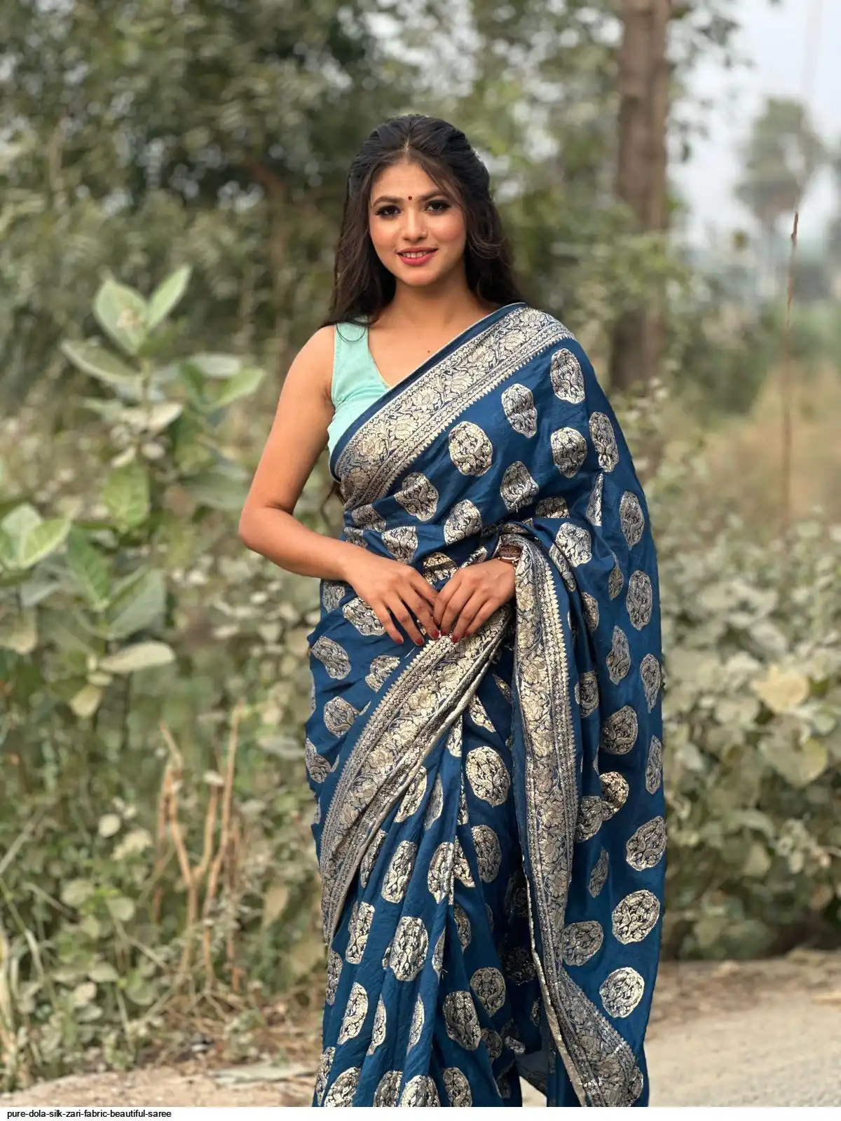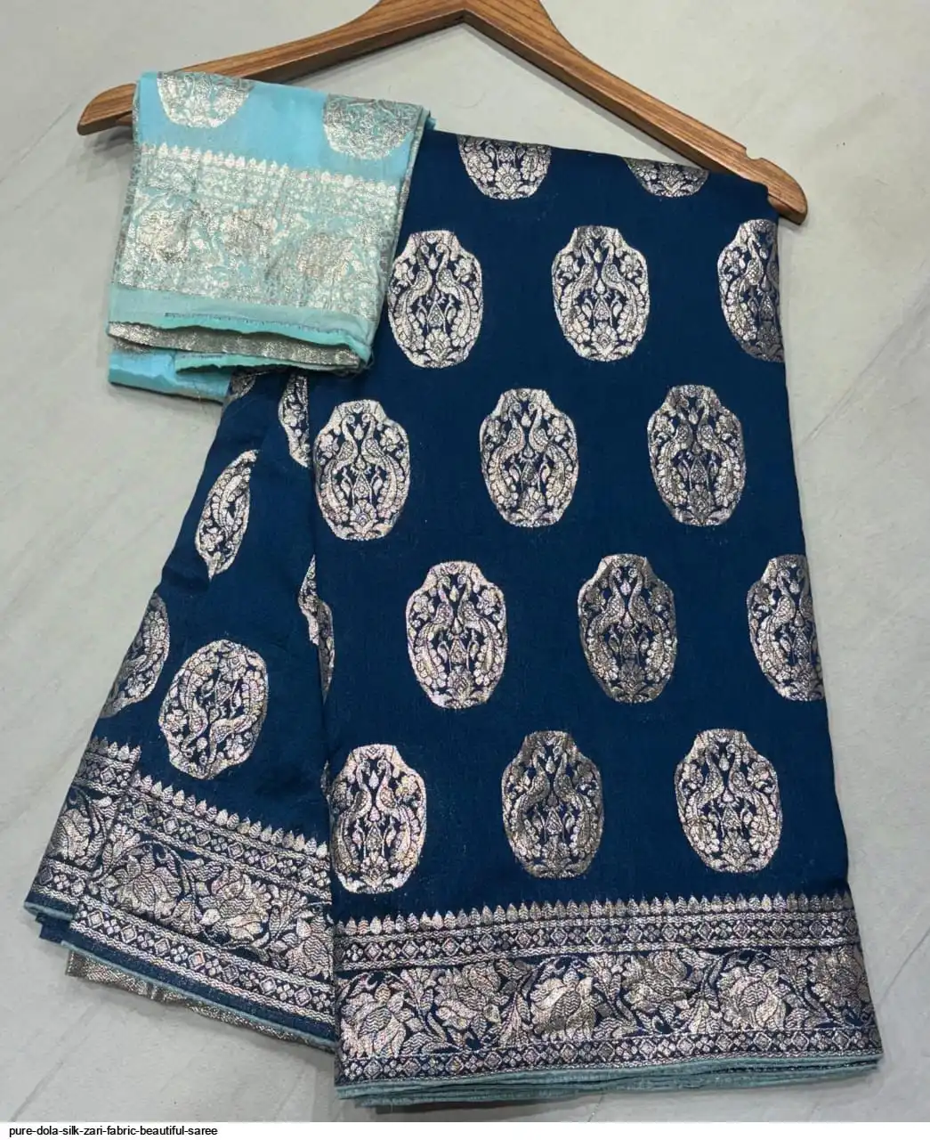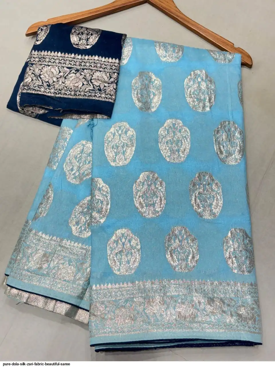 Pure dola silk zari fabric with beautiful mx zari all over Saree