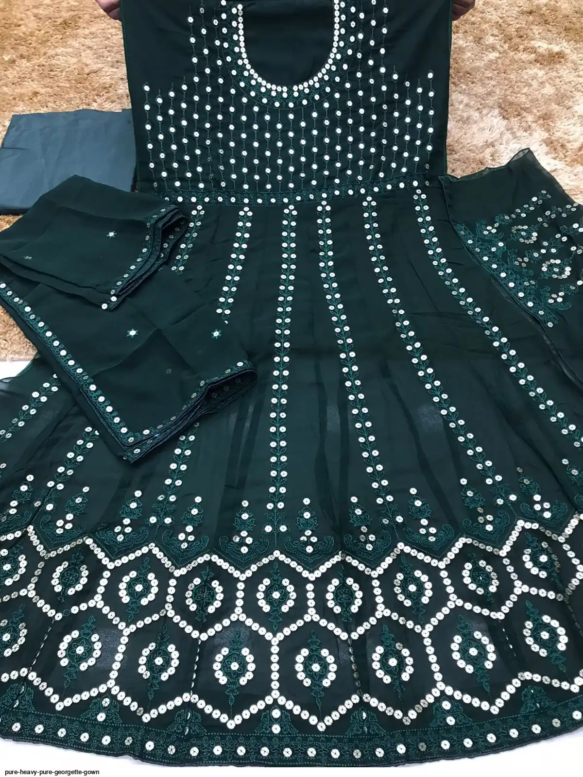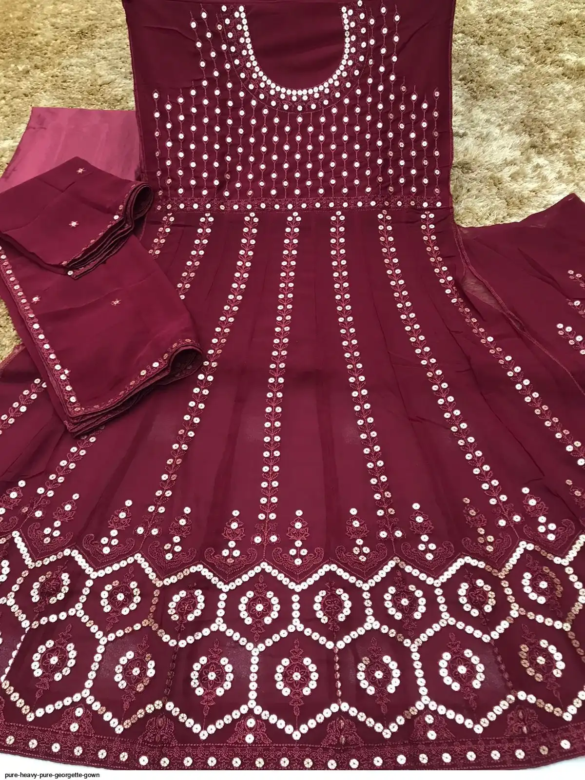 *Top:- Heavy Faux Georgette with Embroidery Chaine With 9mm Squence work *