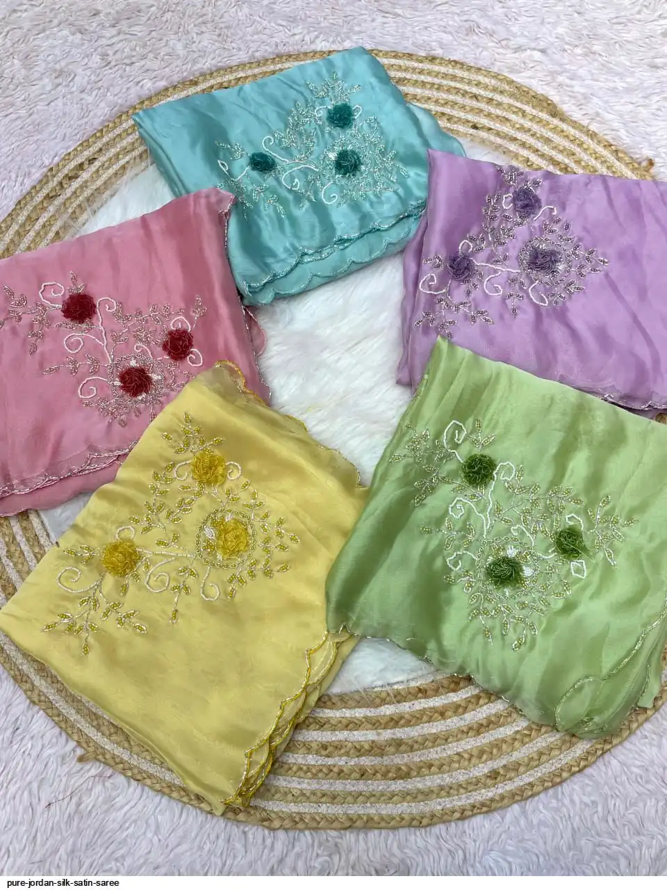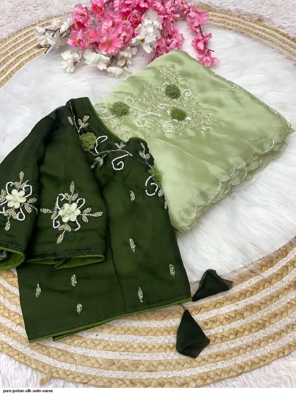 Blouse : Jordan silk satin Fabric With khatli Work ( unstitch blouse)
