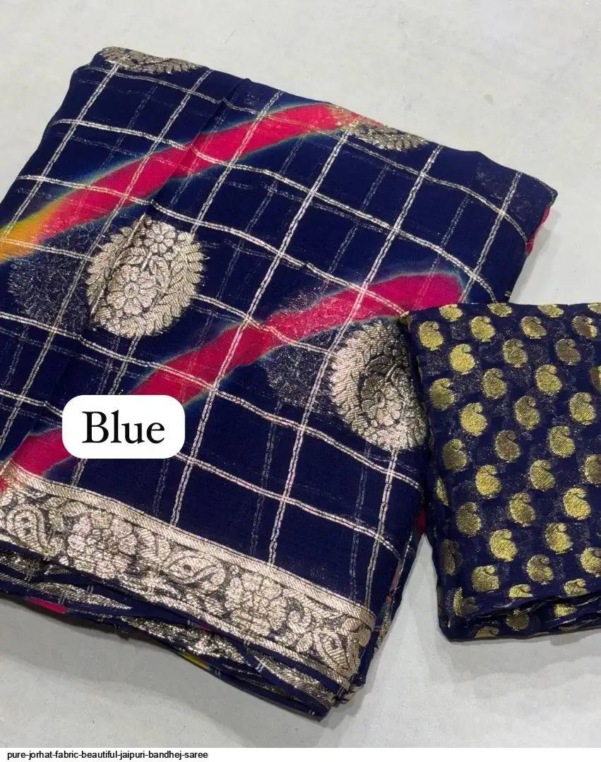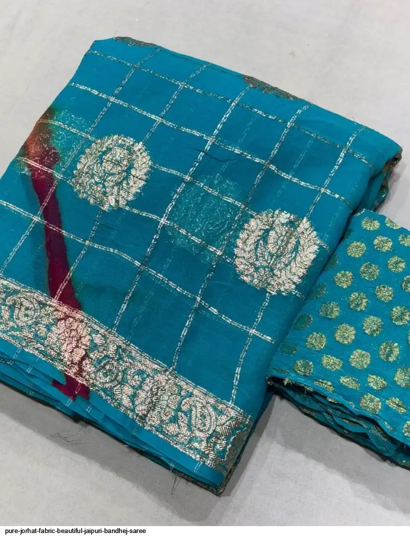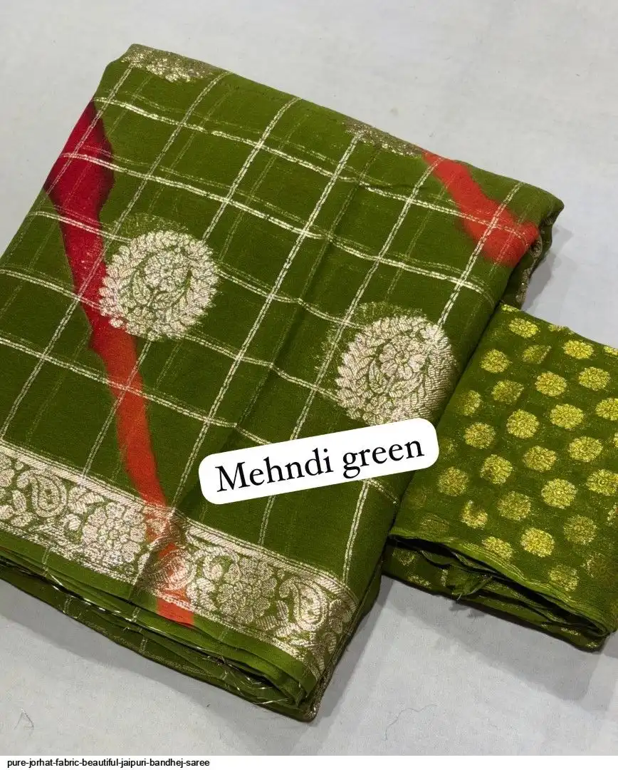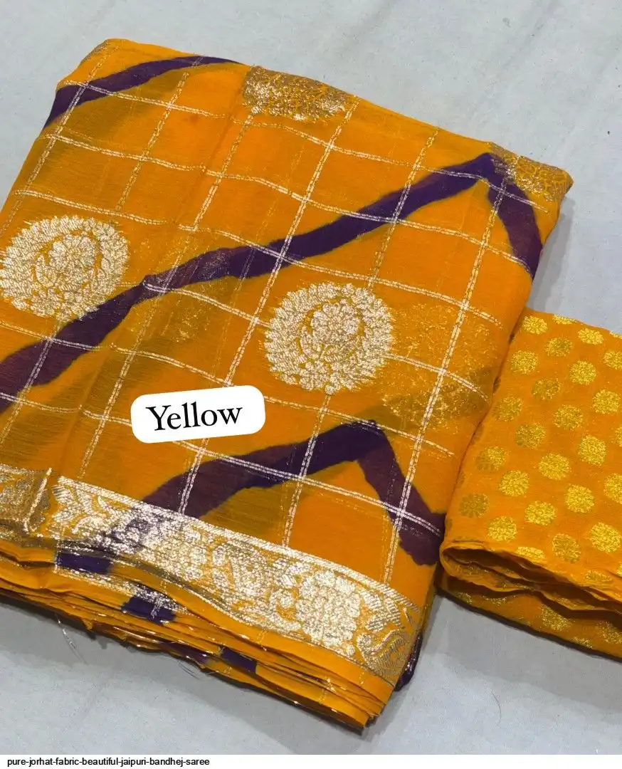 Pure jorhat fabric with beautiful Jaipuri bandhej multi shades lahriya all over and hand Multi daing zari havvy raning supper