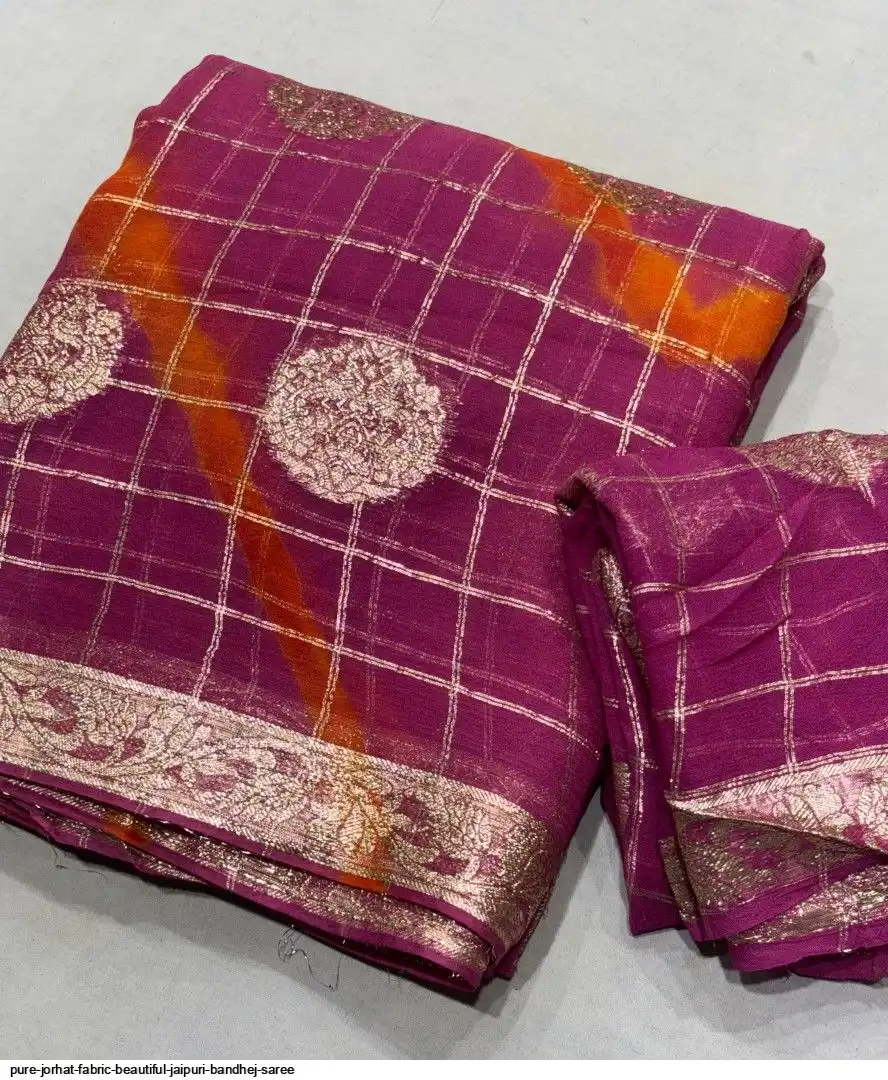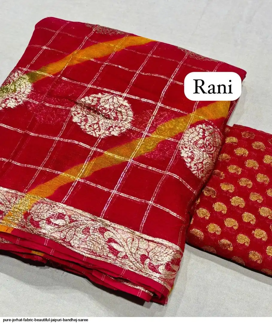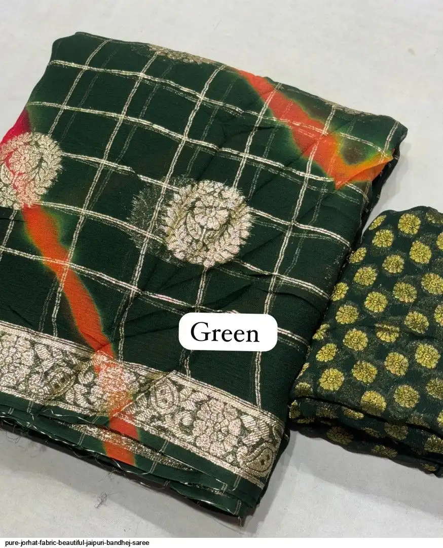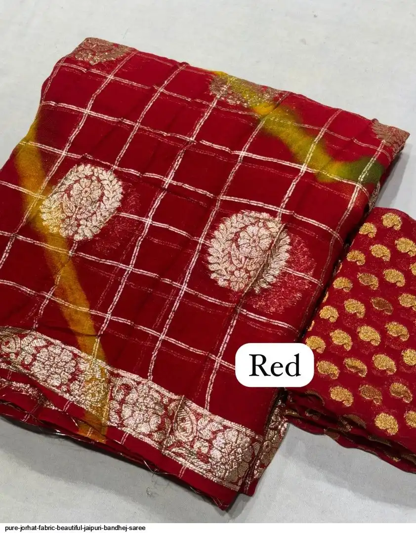 Pure jorhat fabric with beautiful Jaipuri bandhej multi shades lahriya all over and hand Multi daing zari havvy raning supper