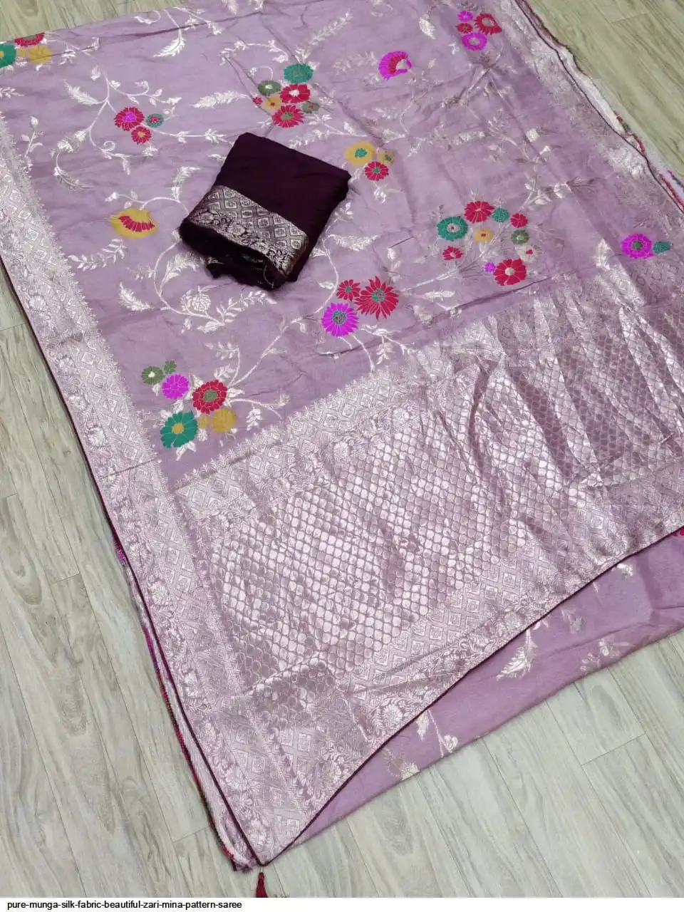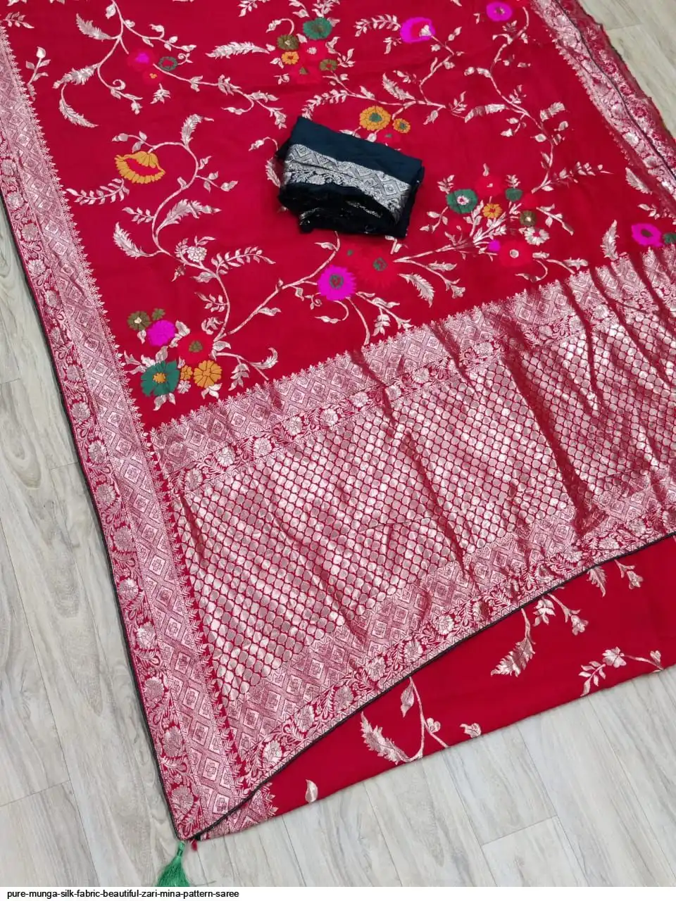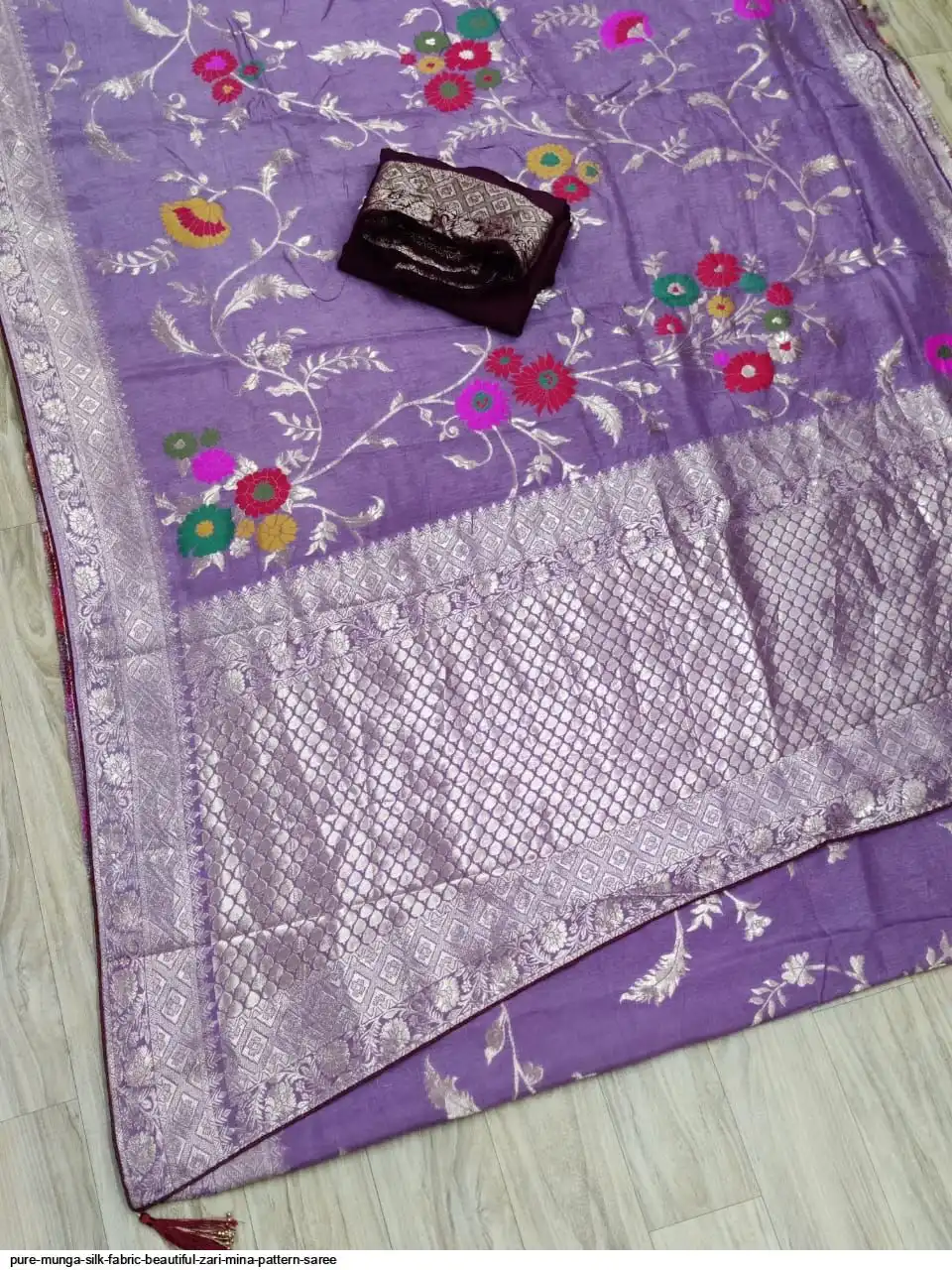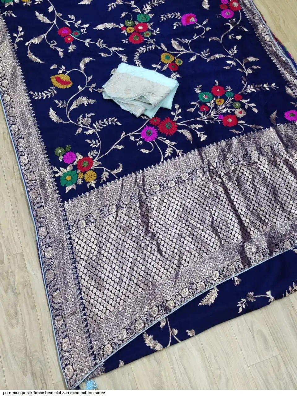 Pure munga silk fabric with beautiful zari mina pattern zari all over and hand daing zari havvy contrast super