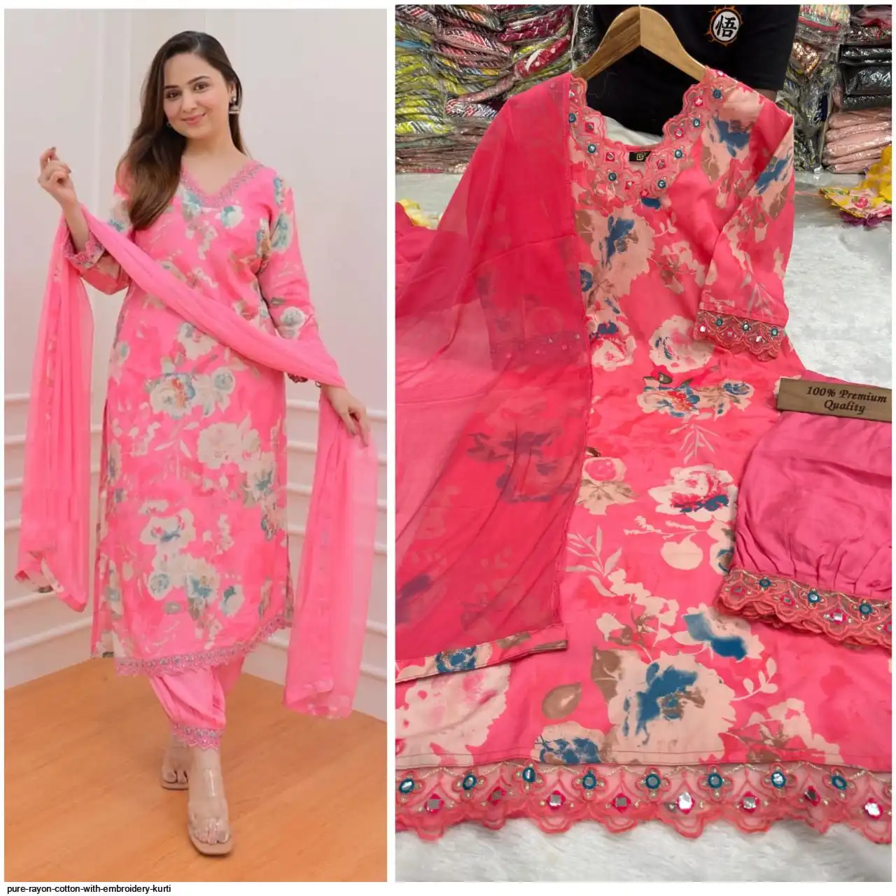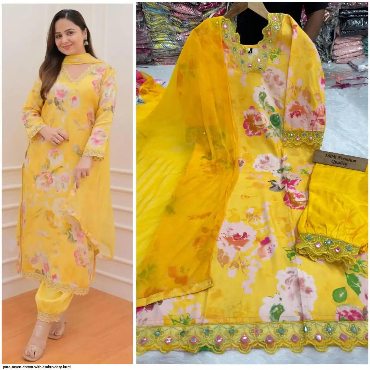 Bottom : Pure rayon cotton with mirror lace