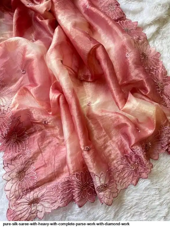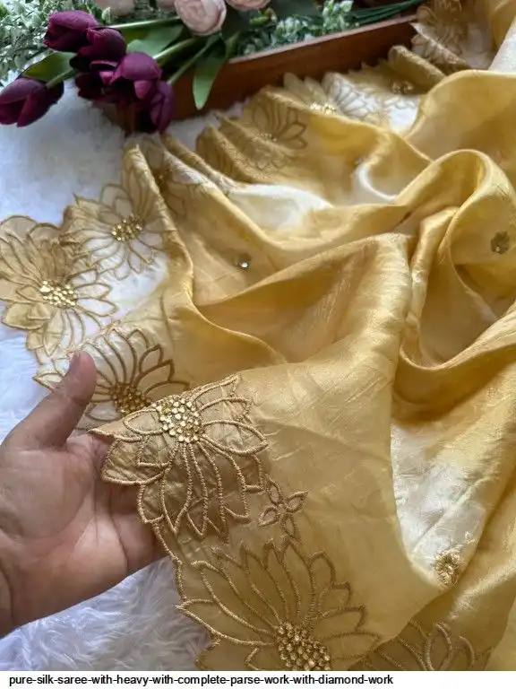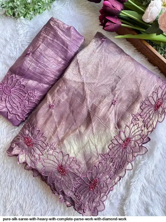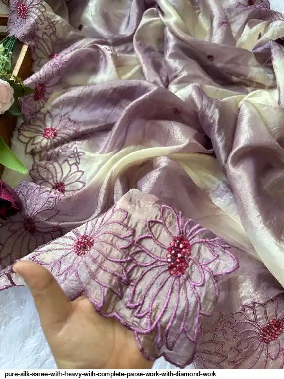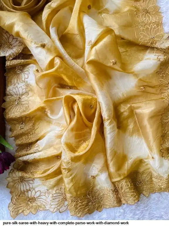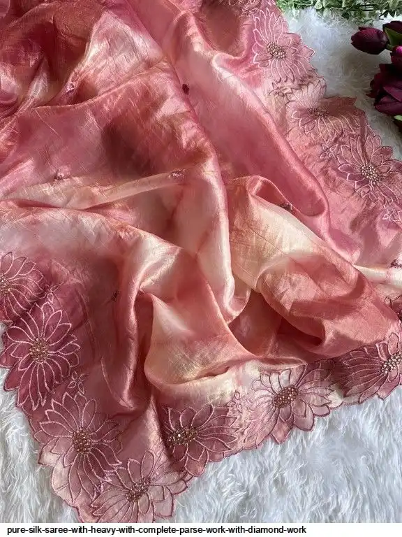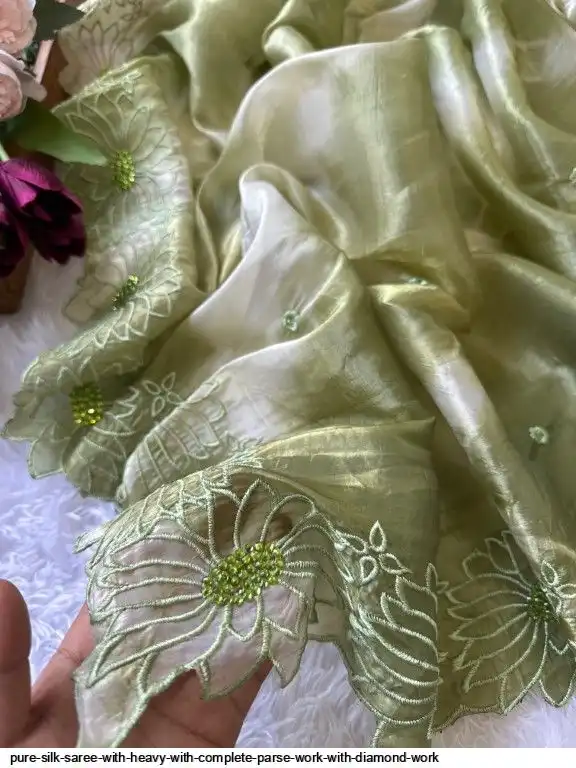 Exclusive pure silk saree with heavy with complete parse work with diamond work