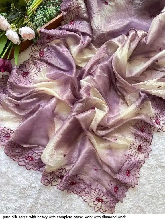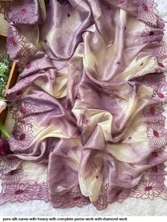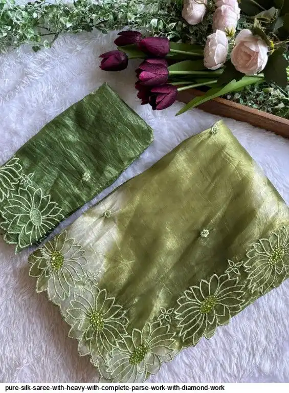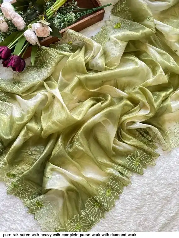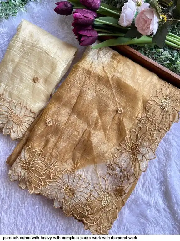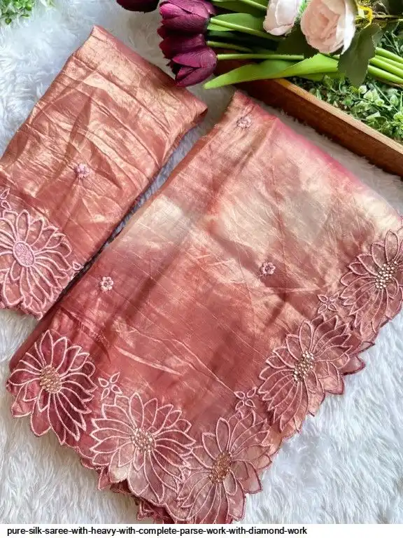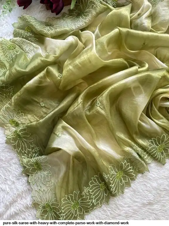 Exclusive pure silk saree with heavy with complete parse work with diamond work