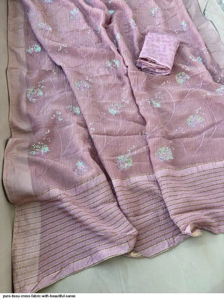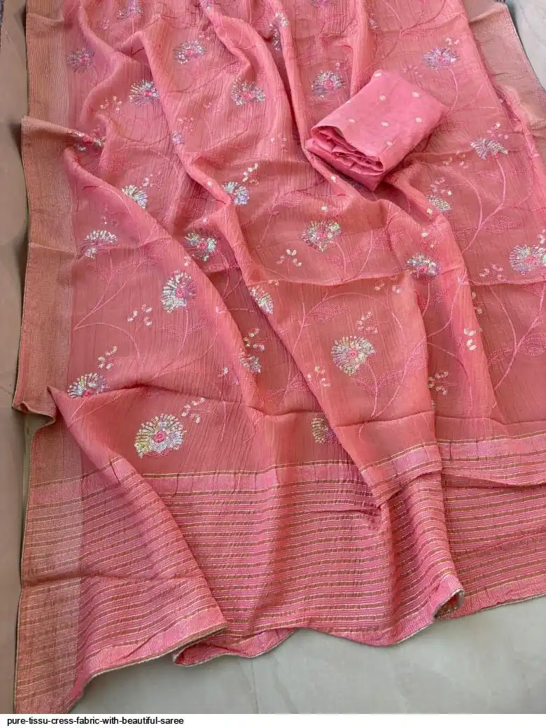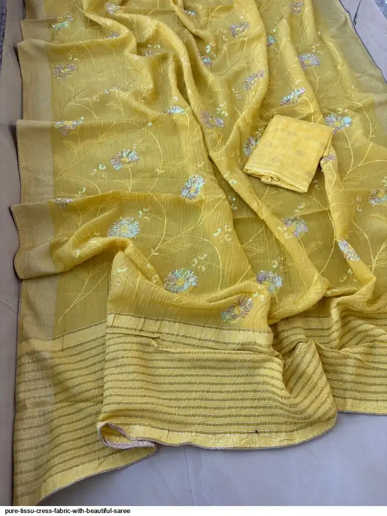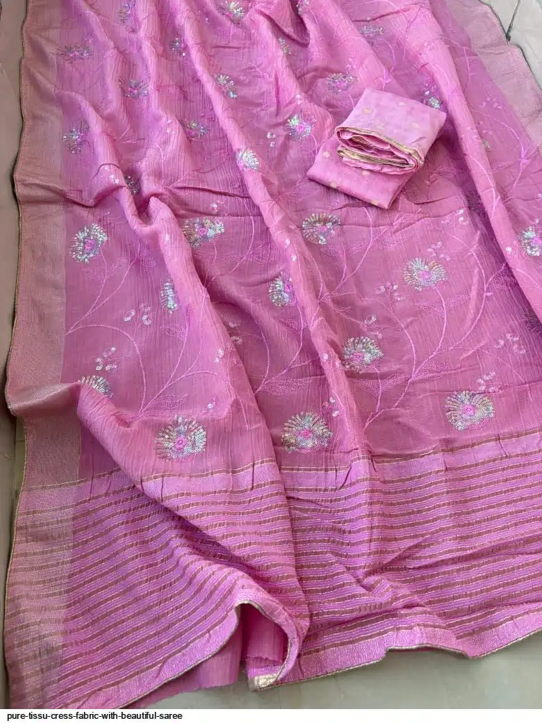 PURE TISSU CRESS FABRIC WITH BEAUTIFUL SAREE