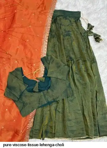 Lehanga pure viscose tissue fabric with inner with proper stiching with full stitched blouse