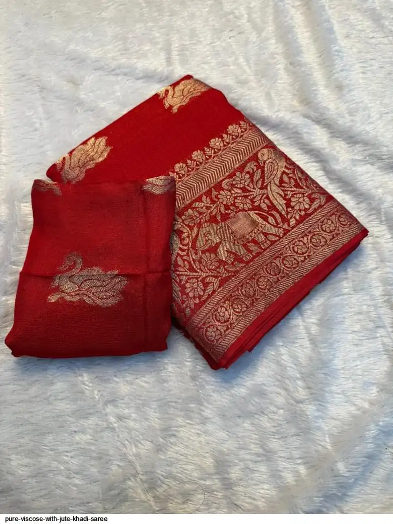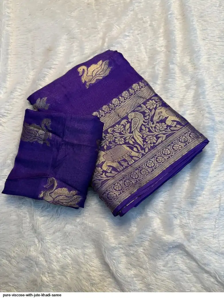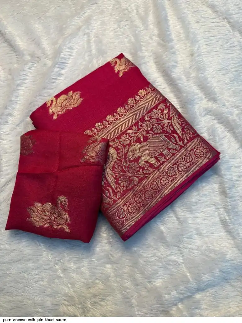 Pure viscose soft Jute Khadi fabric with small jacquard duck all over with elephant patta border