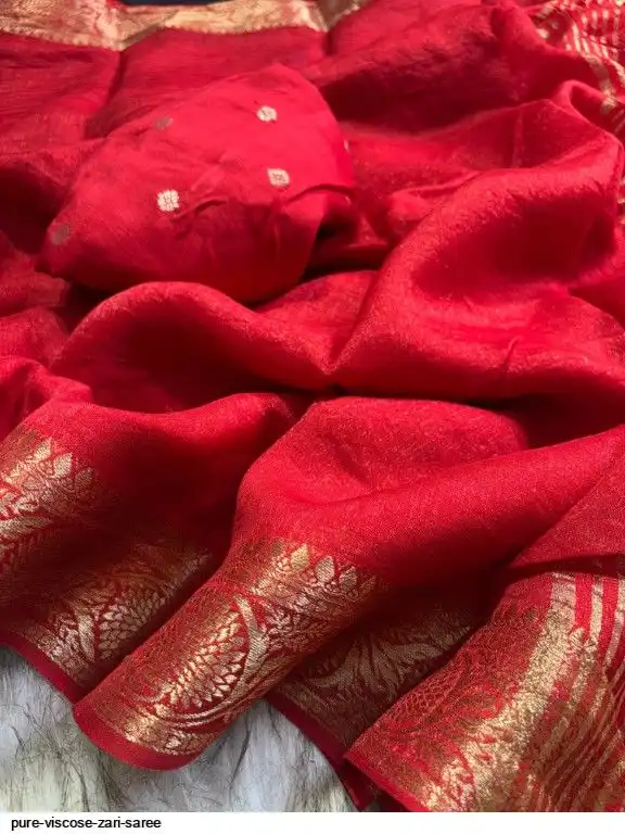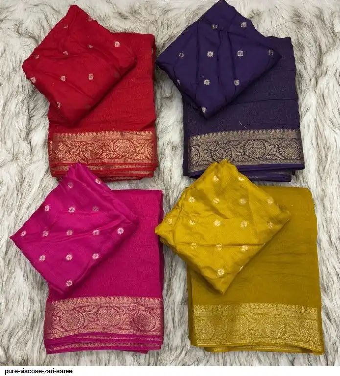 Pure viscose fabric with silk viscose zari Golden weaving with jacquard zari border with pure viscose blouse