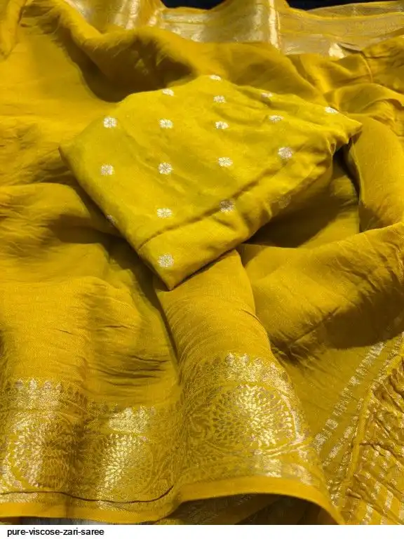 Pure viscose fabric with silk viscose zari Golden weaving with jacquard zari border with pure viscose blouse