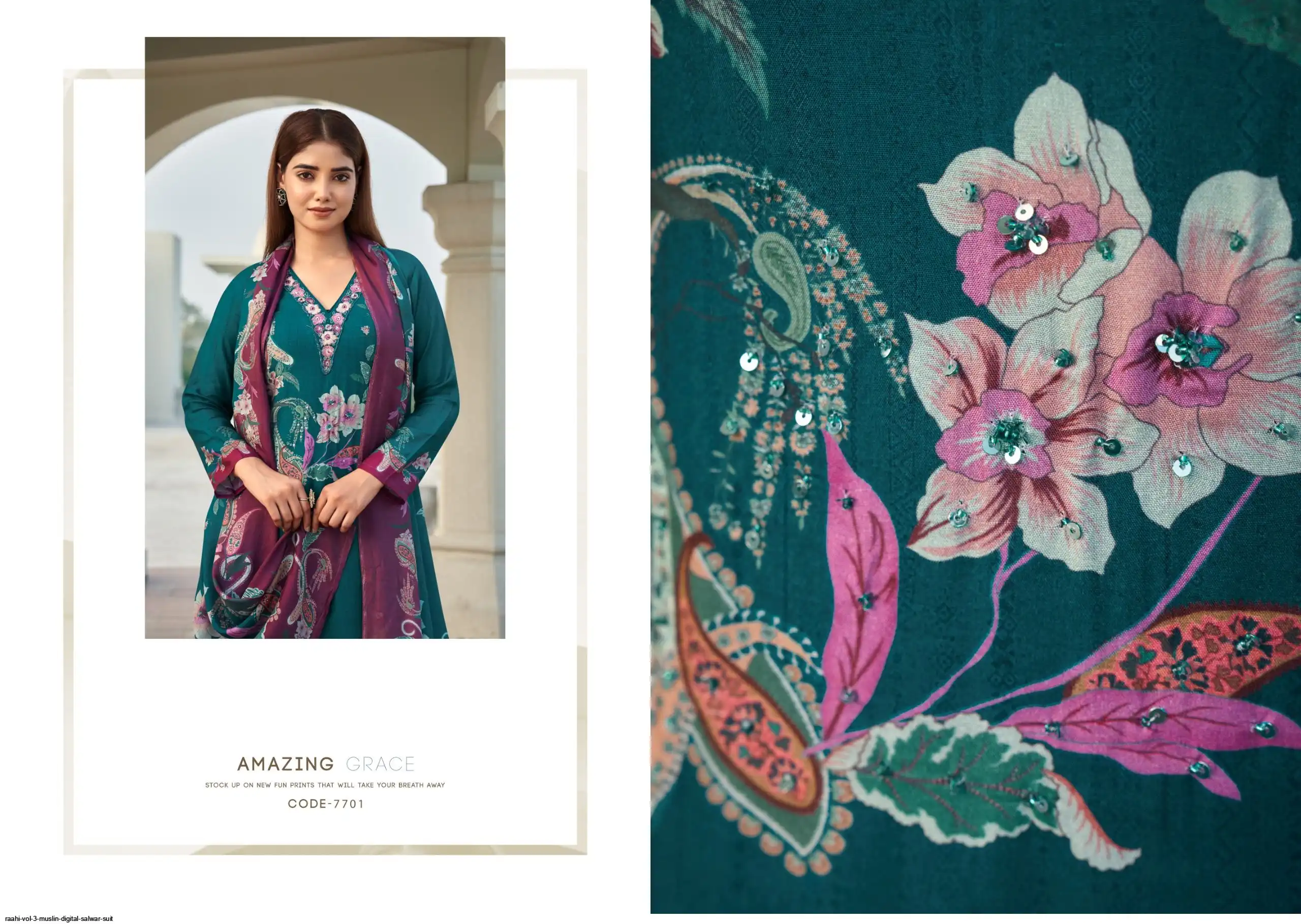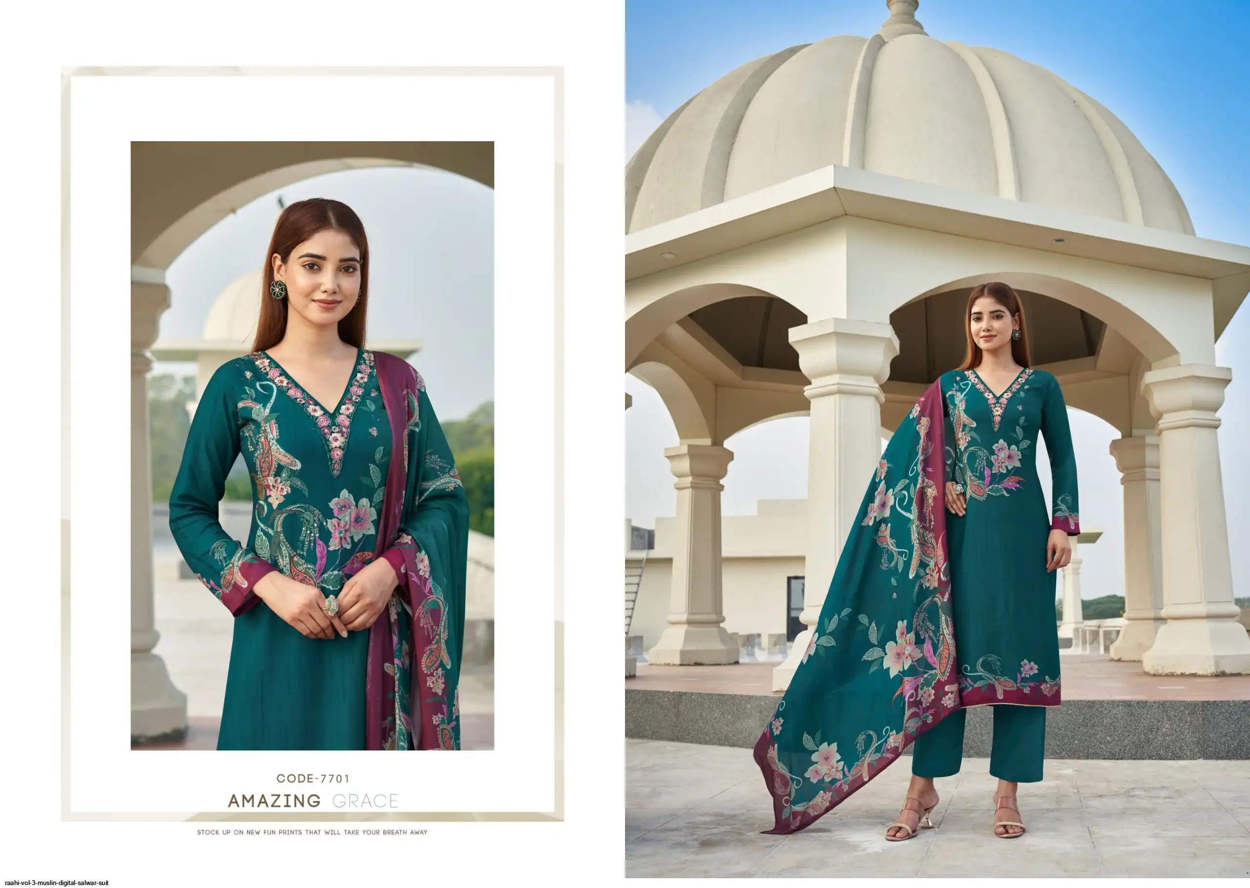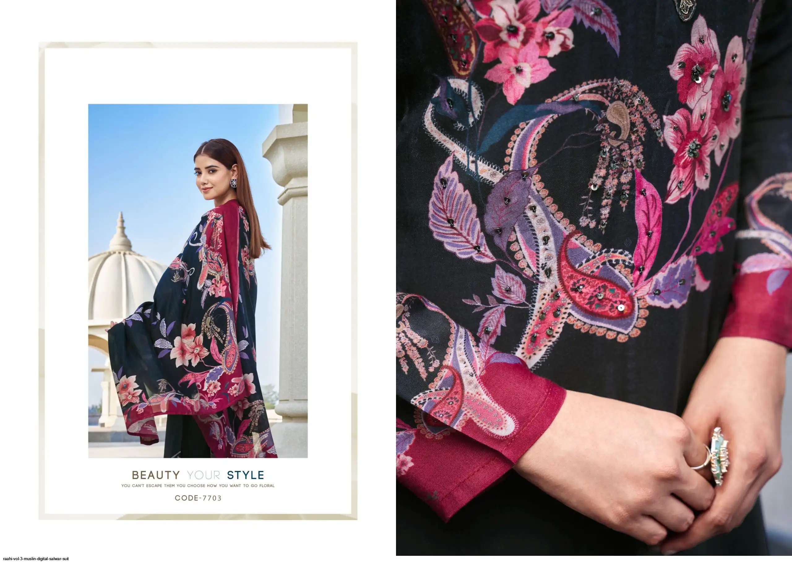🩷 🩷TOP:- MUSLIN DIGITAL PRINTED (HEAVY EMBROIDERY V- NACK PATCH STICH....+ HEAVY HANDWORK ON TAI WORKS....