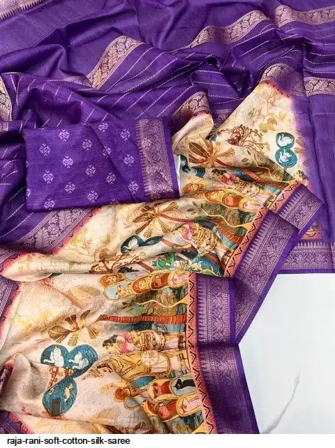 Fabric - Soft Cotton Silk Fabric And Beautiful 3D Print With Fancy Jaquard Weaving Concept In Body And Border With Runing Blouse
