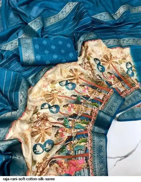 Fabric - Soft Cotton Silk Fabric And Beautiful 3D Print With Fancy Jaquard Weaving Concept In Body And Border With Runing Blouse