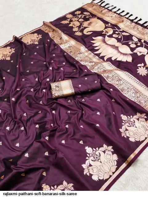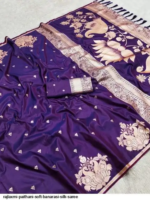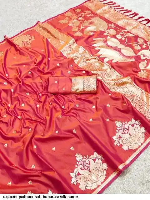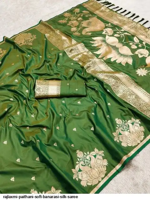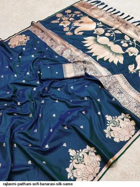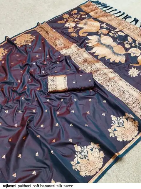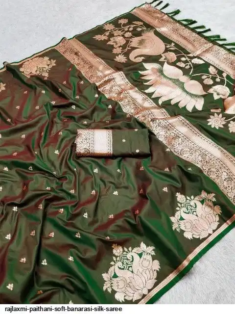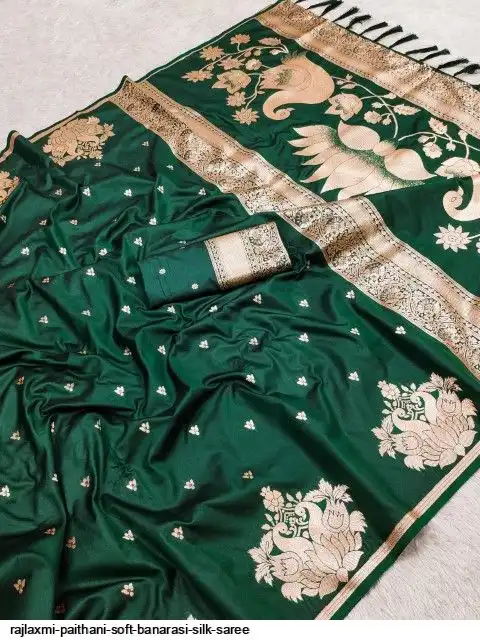 Saree :- Soft Banarasi silk saree with zari weaving motifs touchup design all over the saree & Zari weawing swan designer pallu with Zari weaving swan border & Tassels attached at Pallu End.