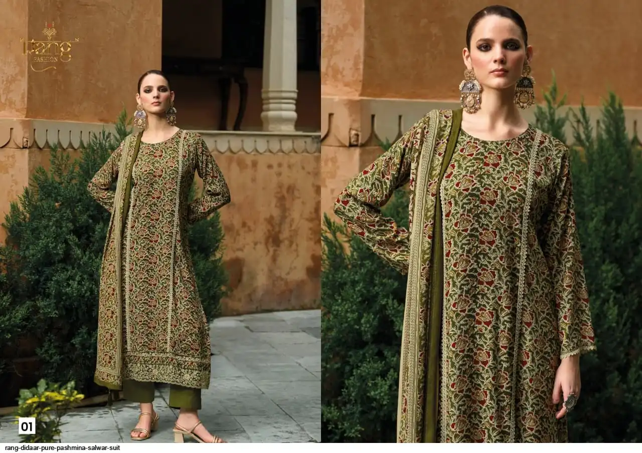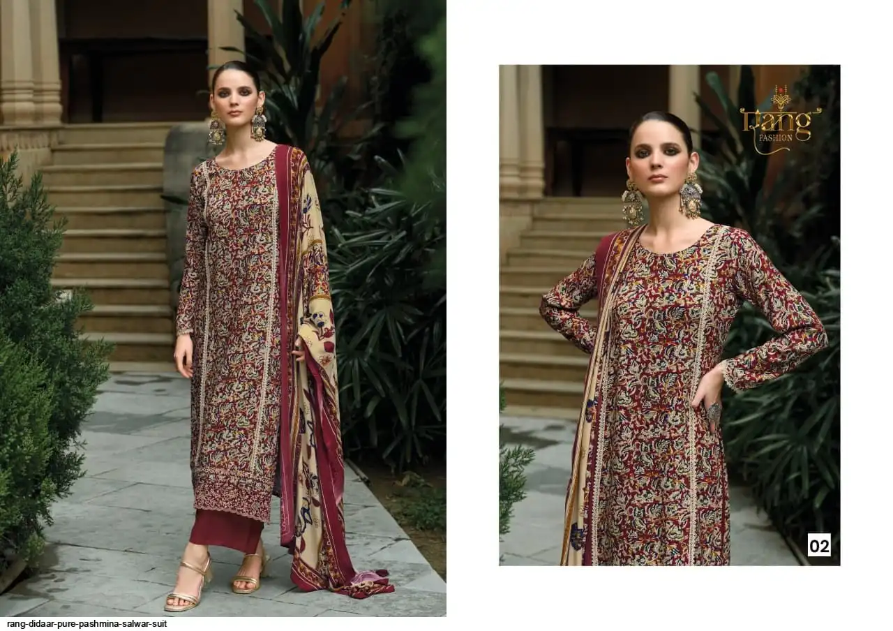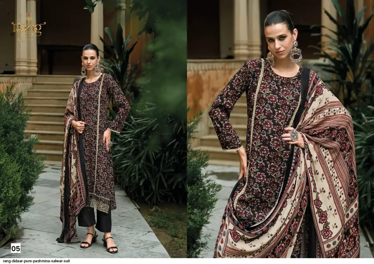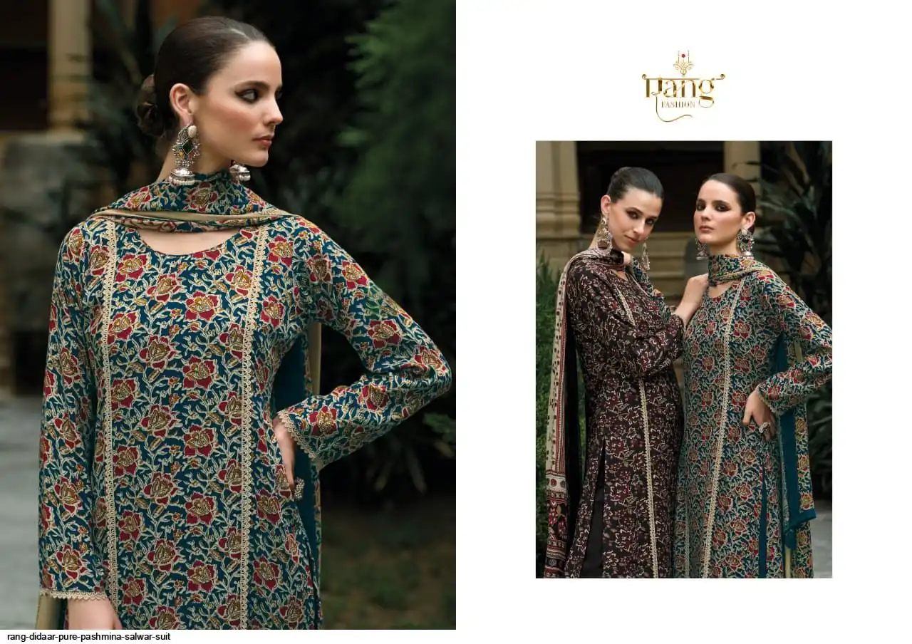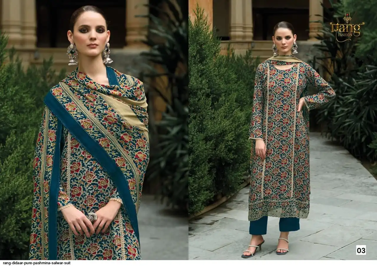 Top: Pure Pashmina Digital print With Applique Emb.Add on daman