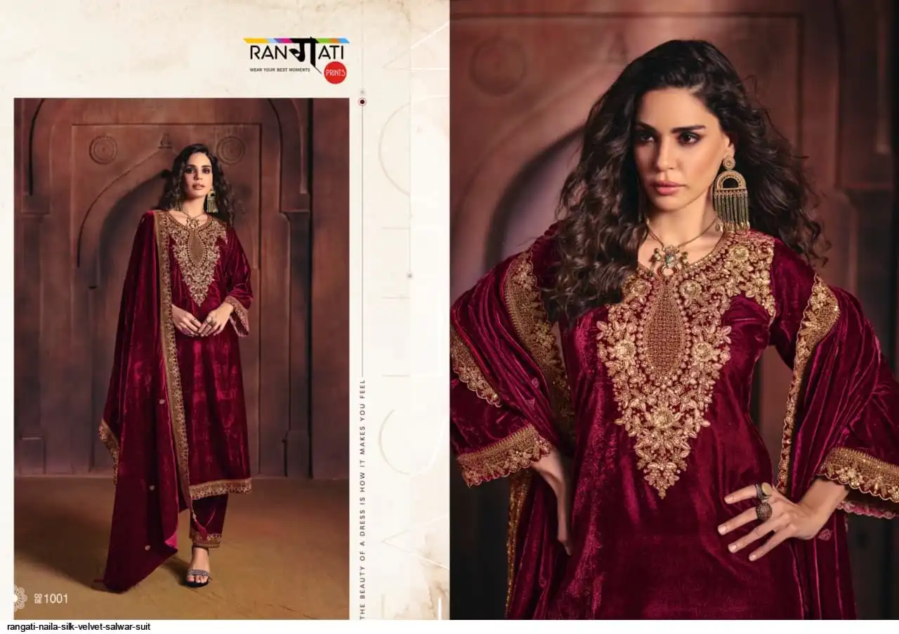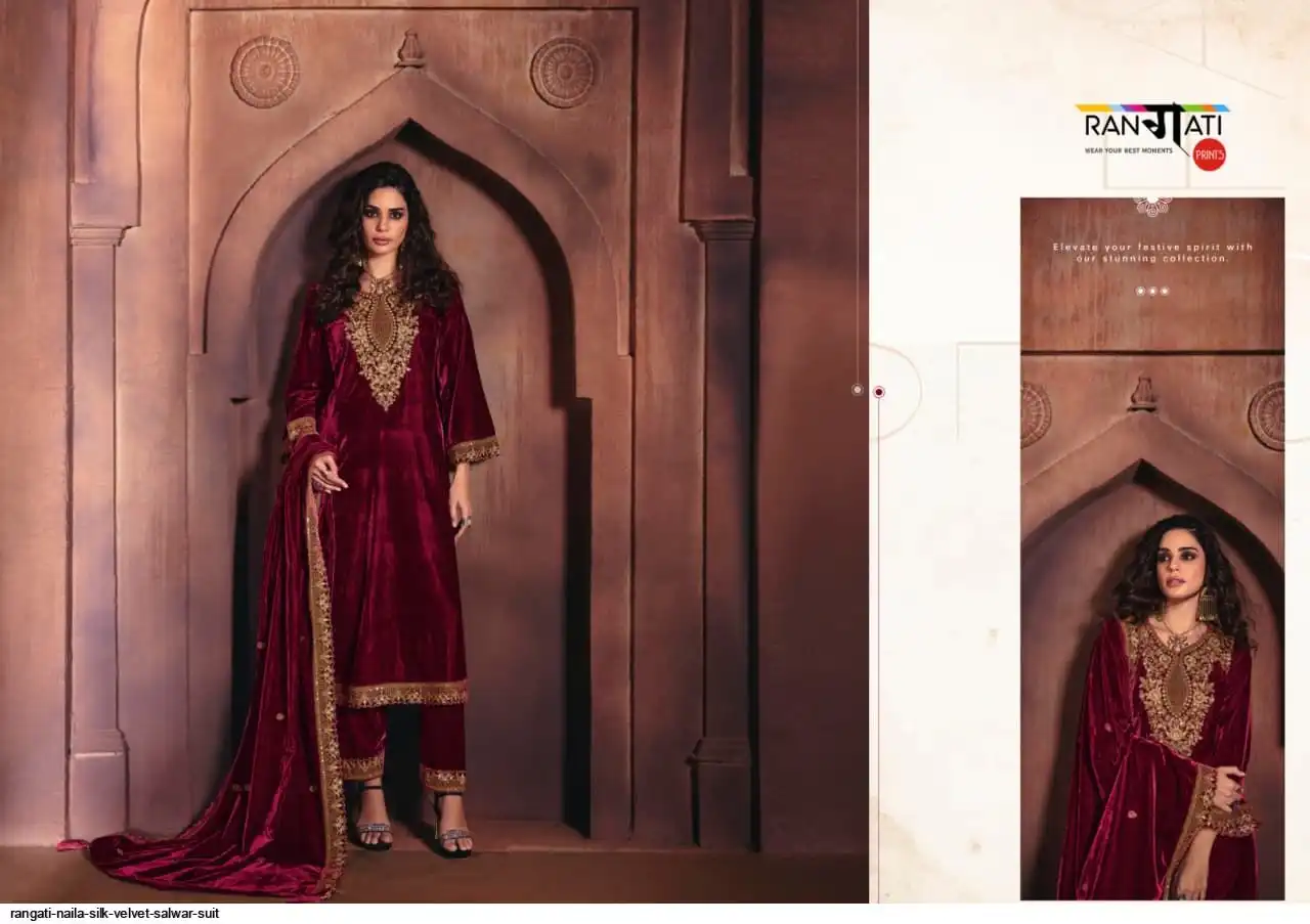 Top : Silk Velvet With Embroidery In Shirt