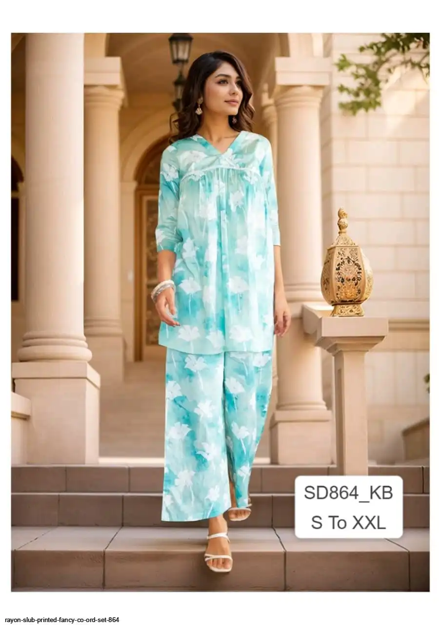 RAYON SLUB PRINTED FANCY CO ORD SET 864