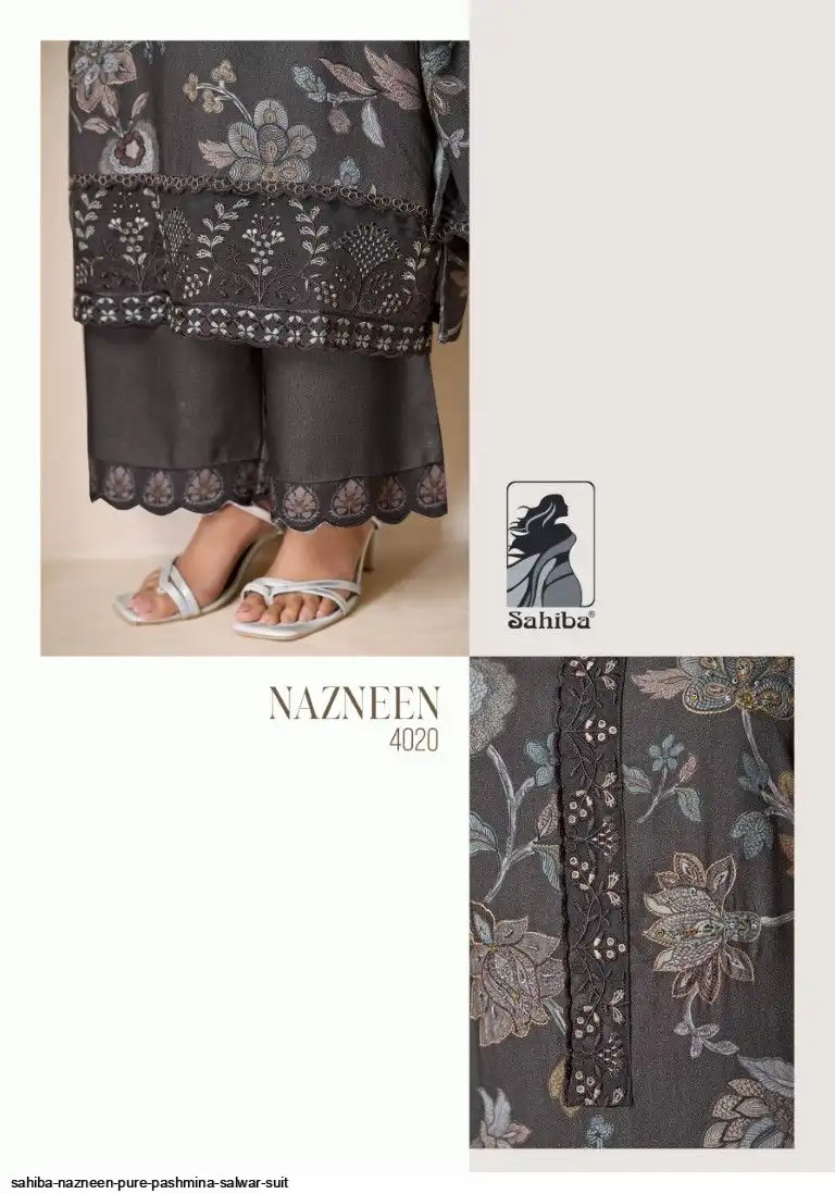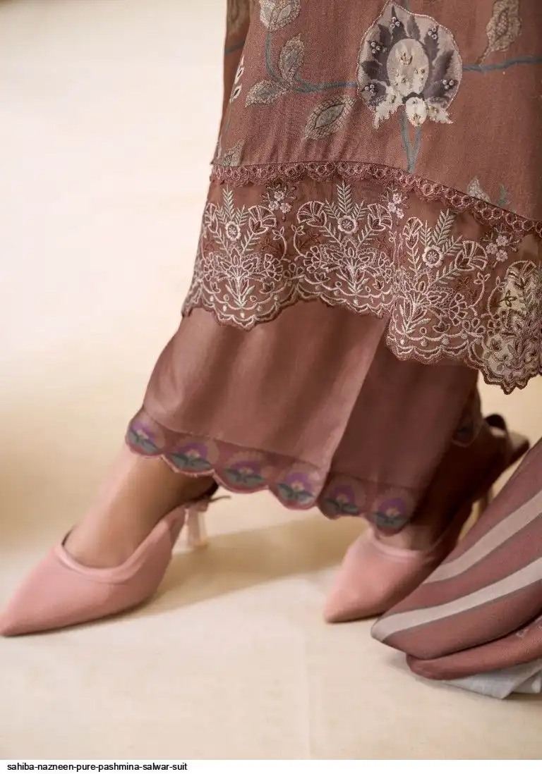 BOTTOM - PURE PASHMINA TWILL SOLID DYED WITH PASHMINA PRINTED WITH EMB. PLAZZO