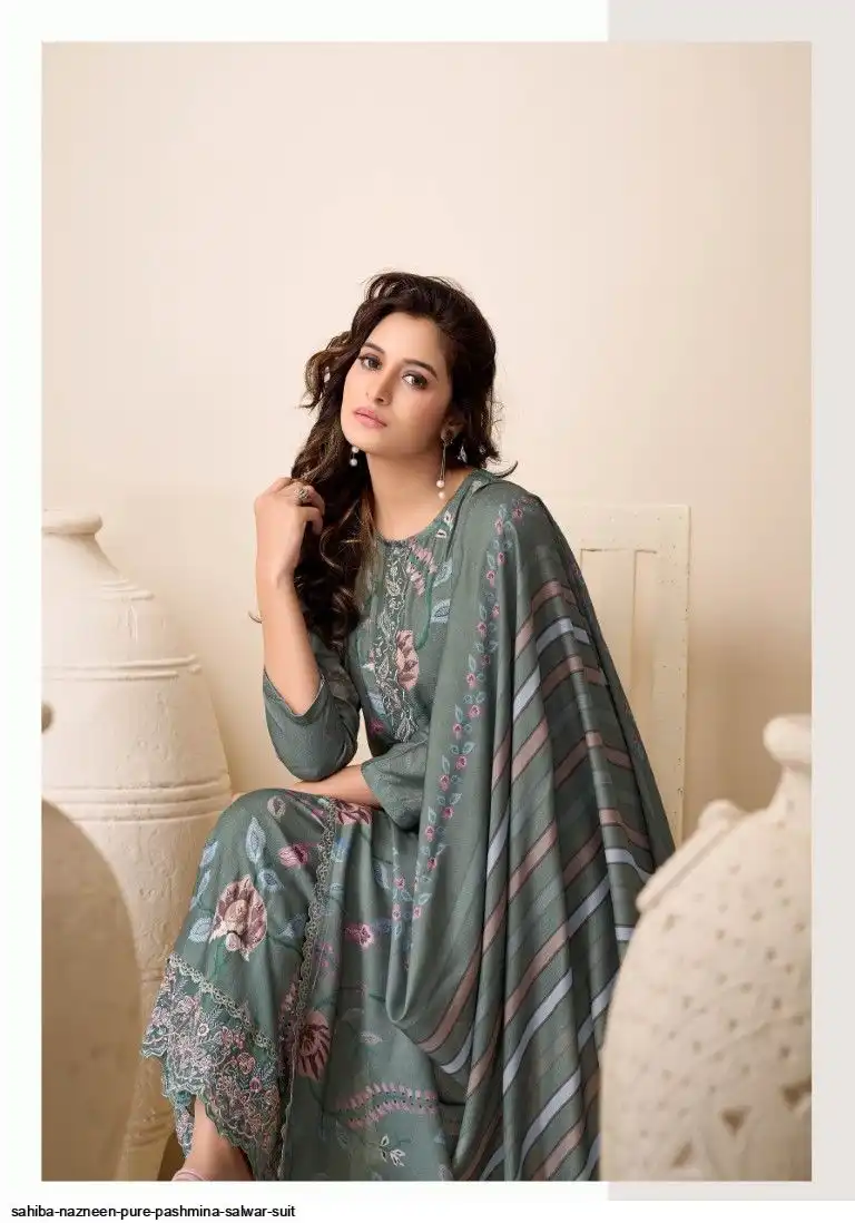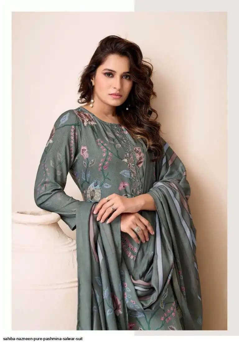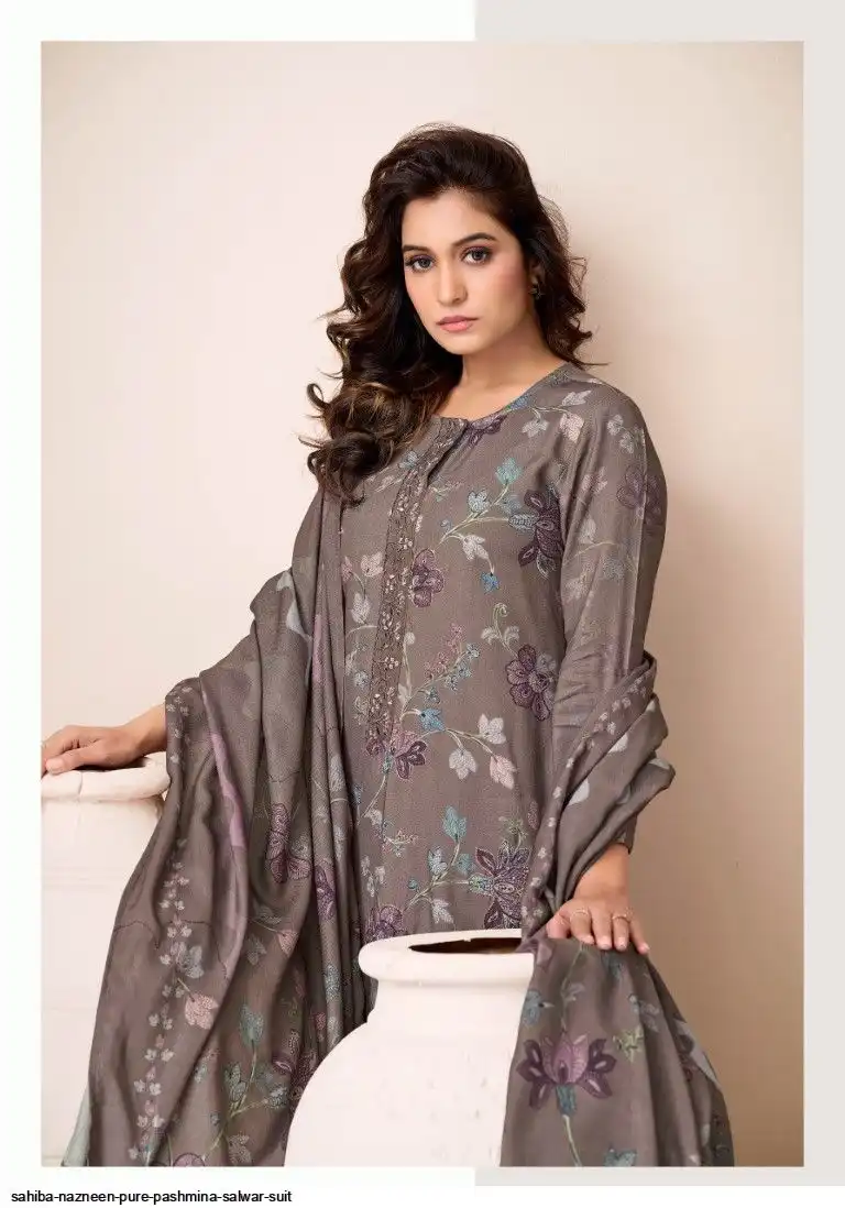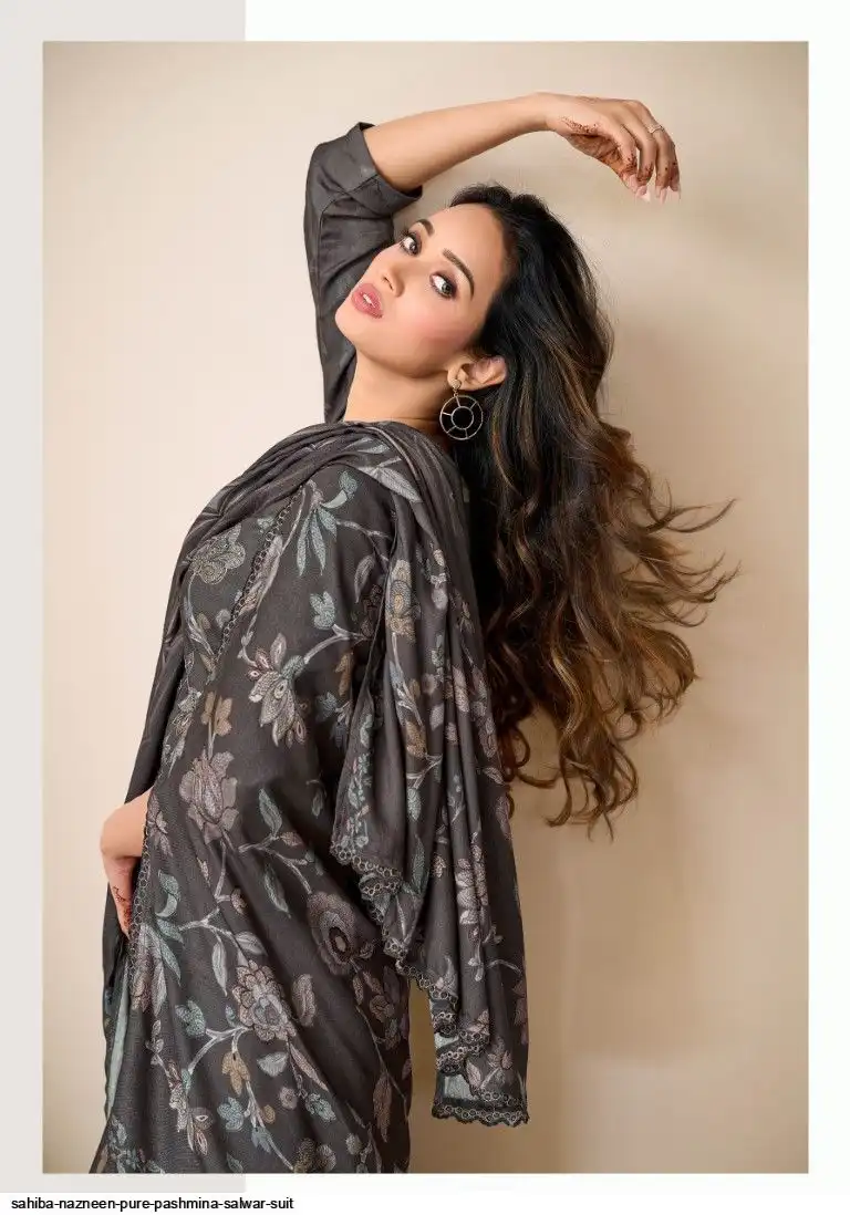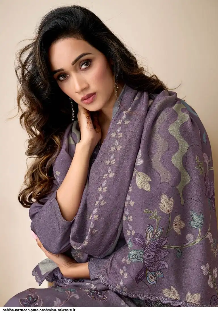 TOP - PURE PASHMINA TWILL DIGITAL PRINT WITH HAND WORK AND FANCY EMB. DAMAN AND NECK PLACKET