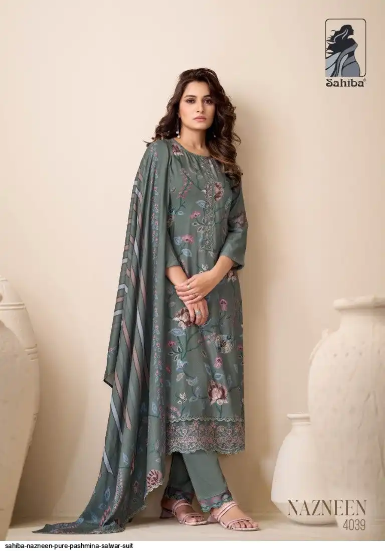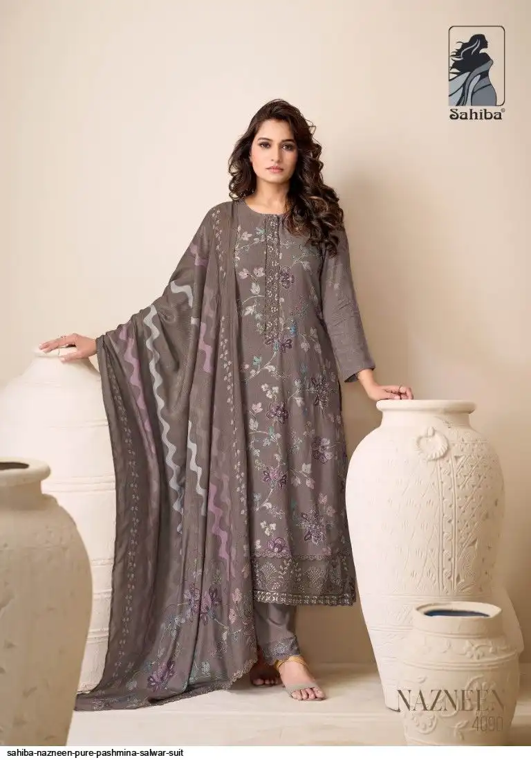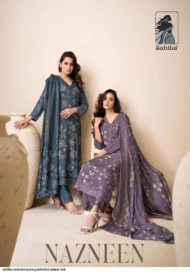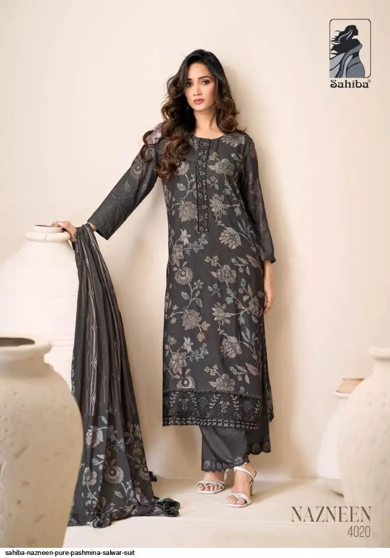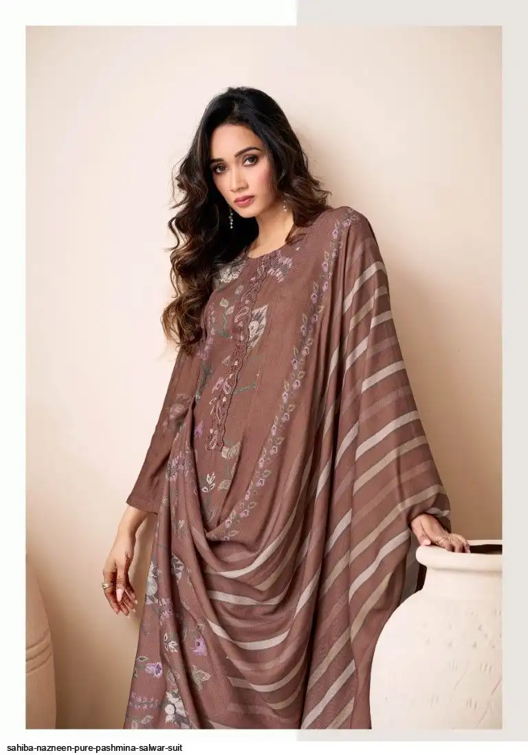 TOP - PURE PASHMINA TWILL DIGITAL PRINT WITH HAND WORK AND FANCY EMB. DAMAN AND NECK PLACKET