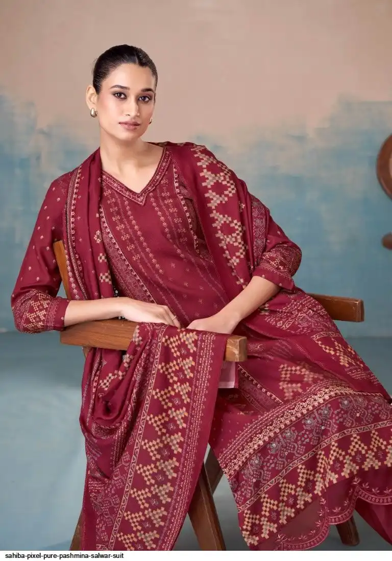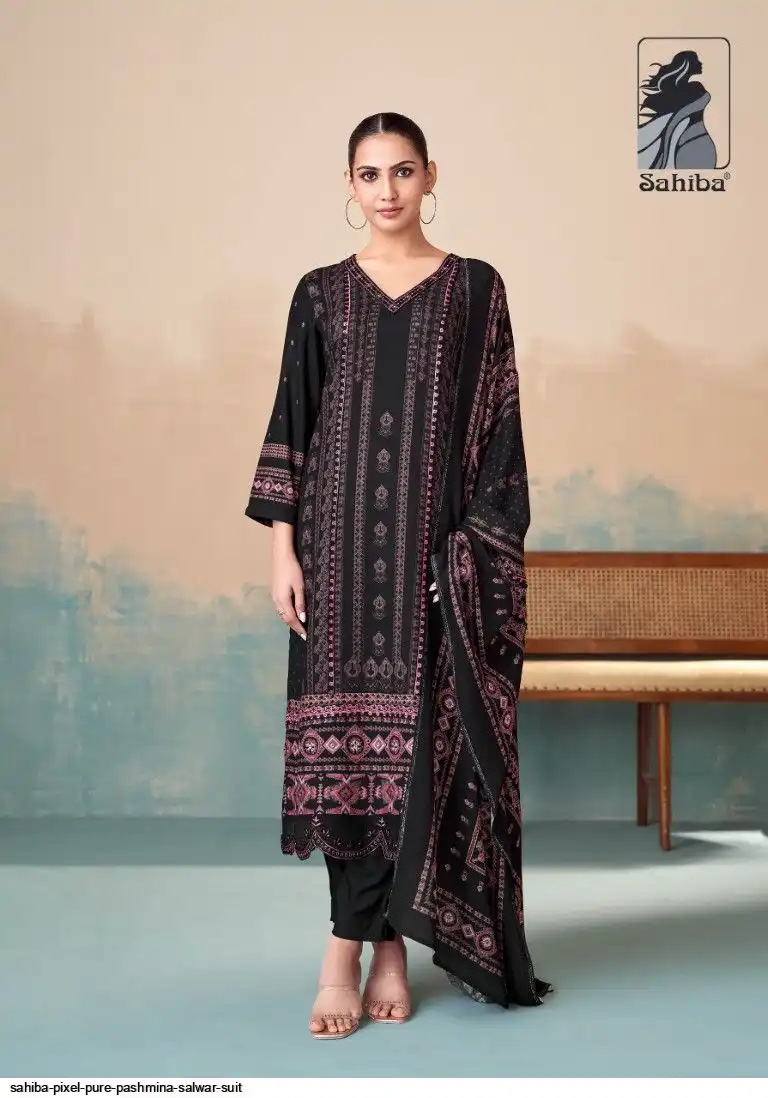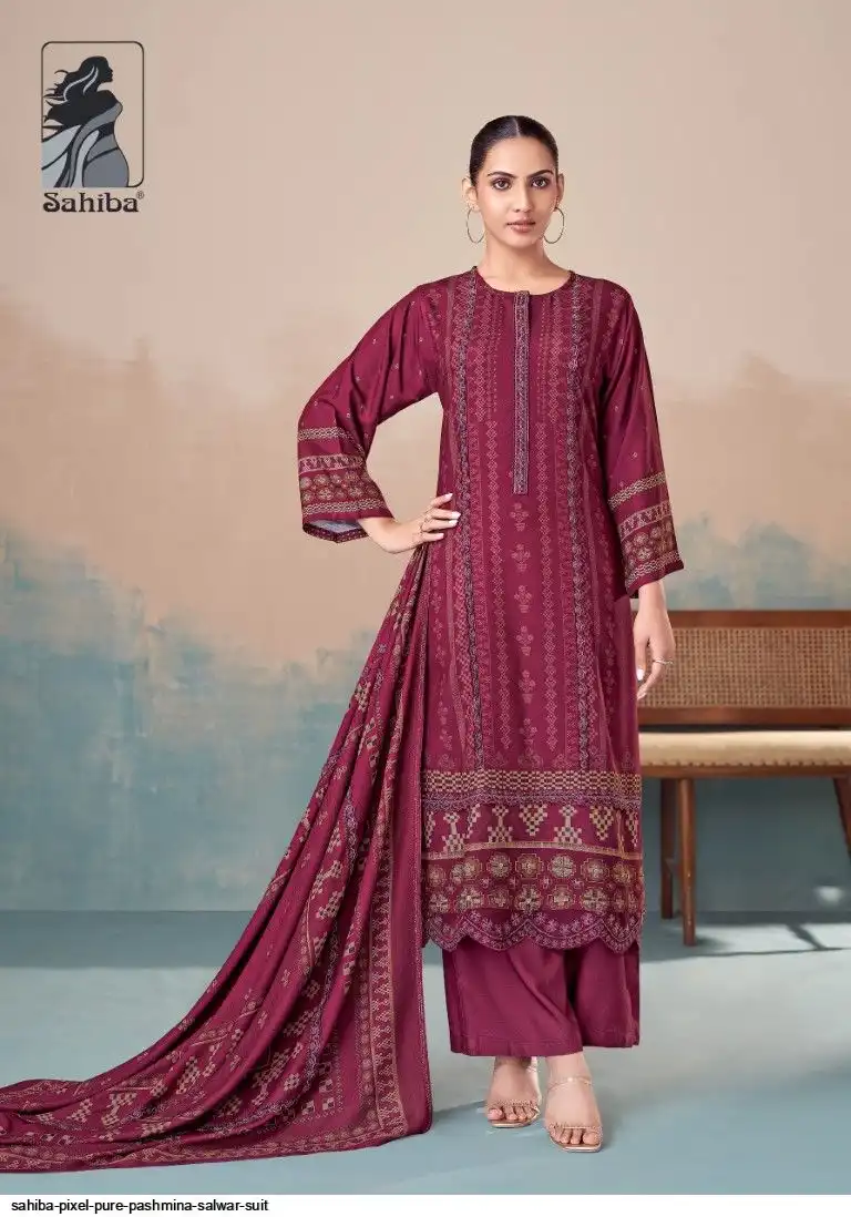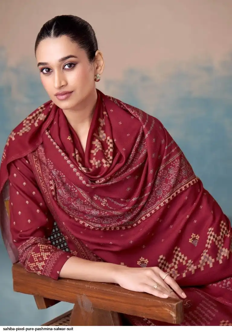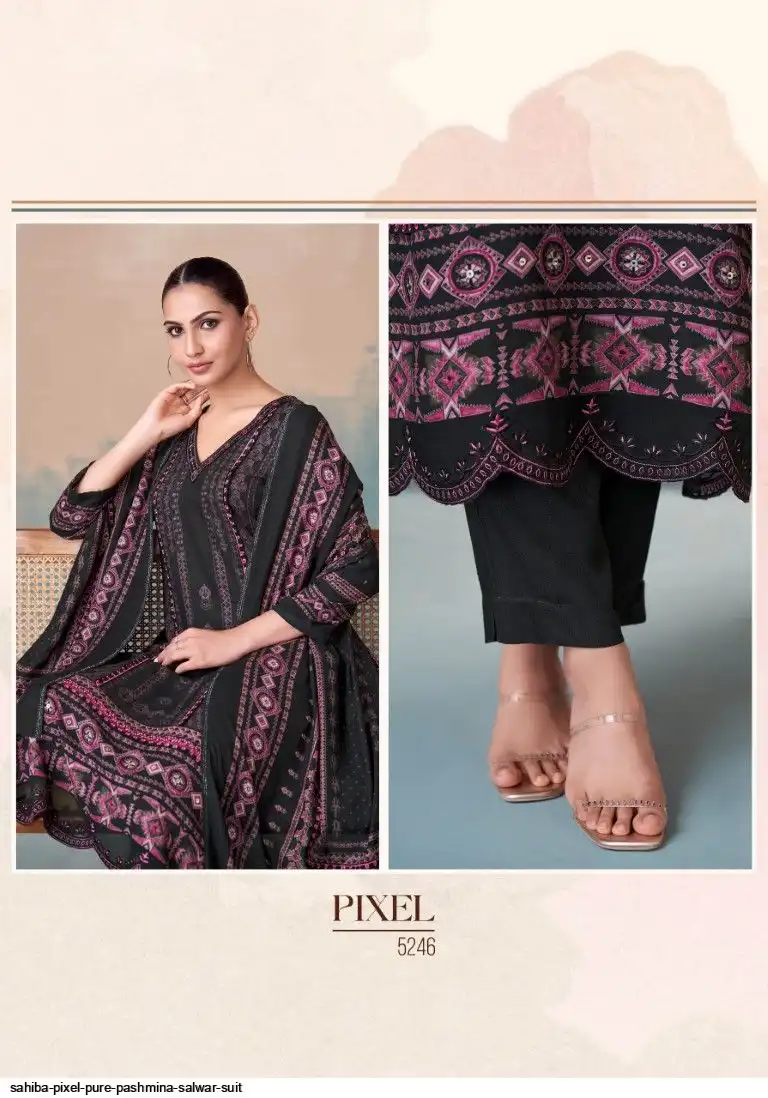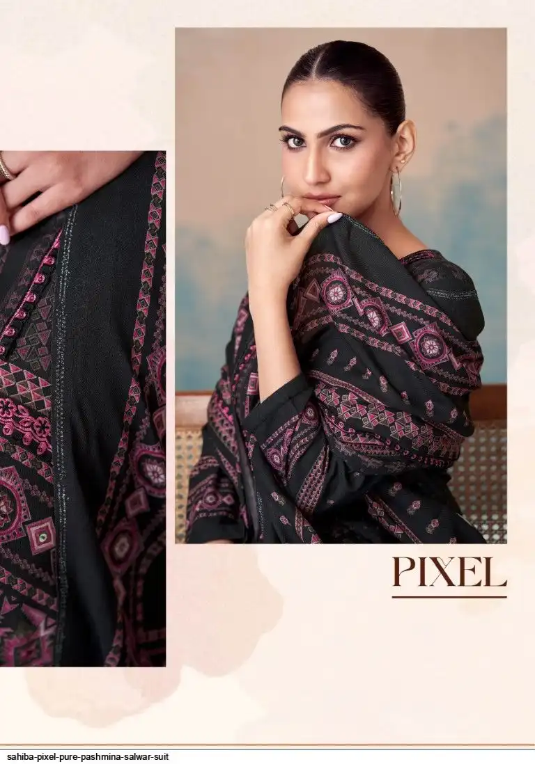 TOP - PURE PASHMINA TWIL DIGITAL PRINT WITH HAND WORK AND HEAVY EMB. DAMAN AND EMB. NECK WITH FANCY CENTRE LACE IN TOP