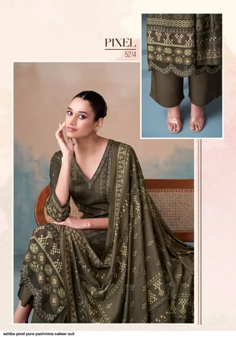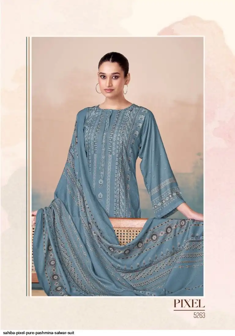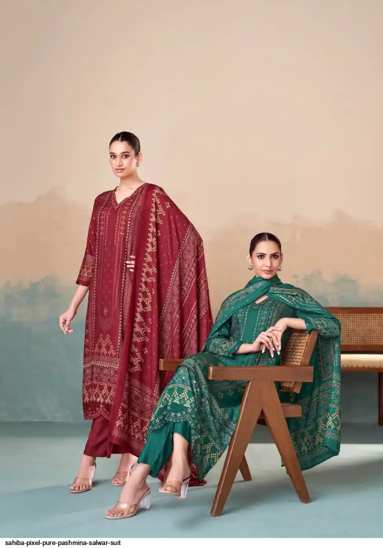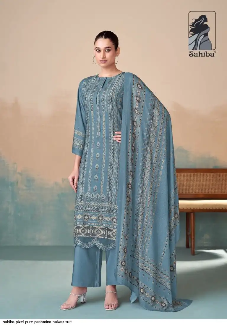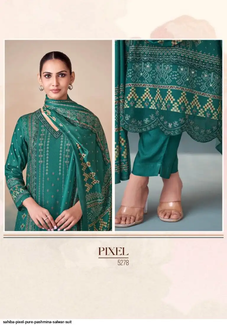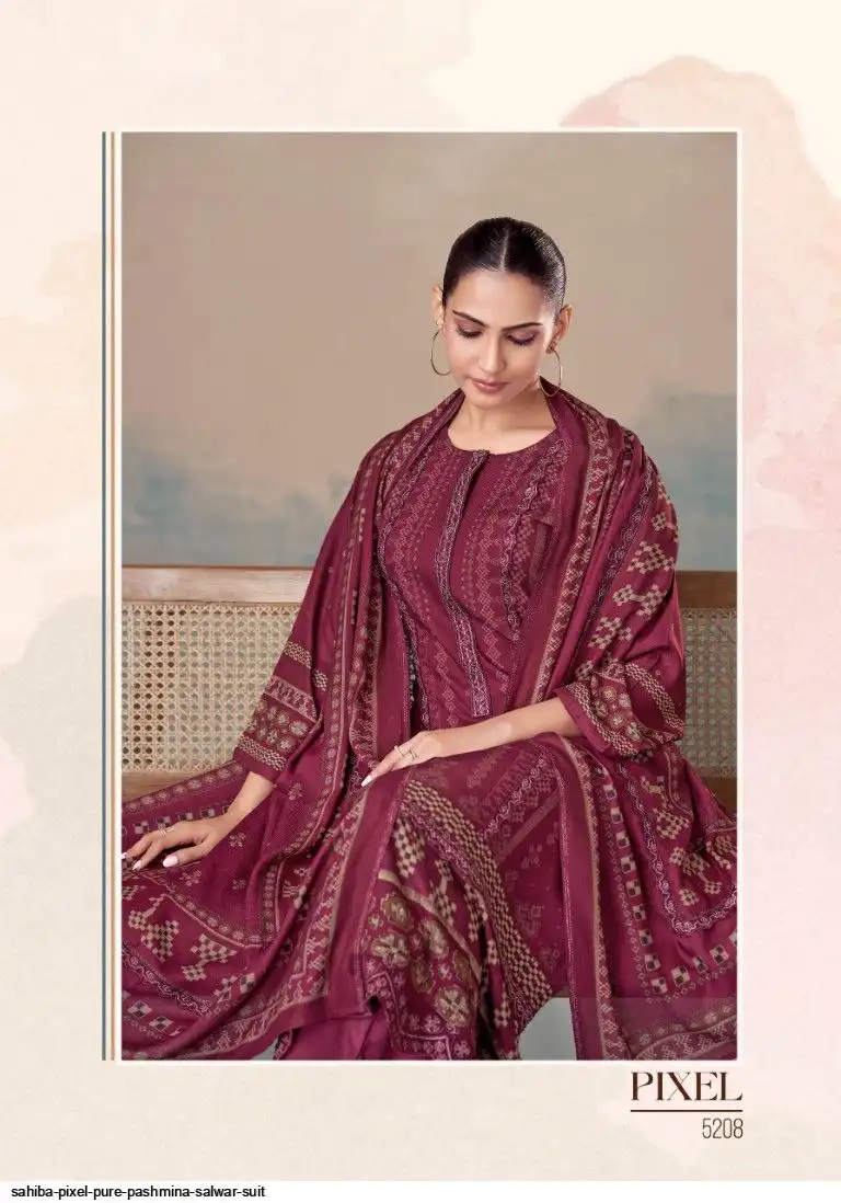 TOP - PURE PASHMINA TWIL DIGITAL PRINT WITH HAND WORK AND HEAVY EMB. DAMAN AND EMB. NECK WITH FANCY CENTRE LACE IN TOP