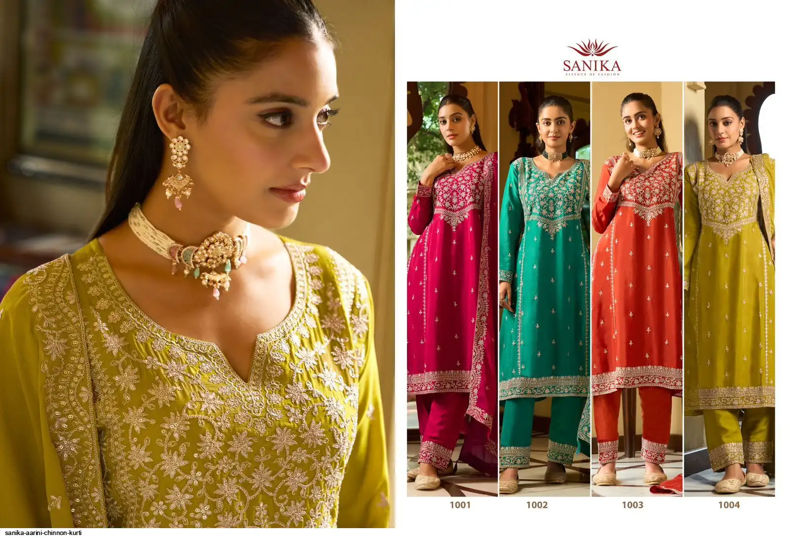 FABRIC - PREMIUM CHINNON SILK ( HEAVY EMBROIDERED CHINON TOP WITH HAND EMBLISSIED MIRROR WORK WITH EMBROIDERED PLAZZO PANT AND HAND WORK DUPPTA )