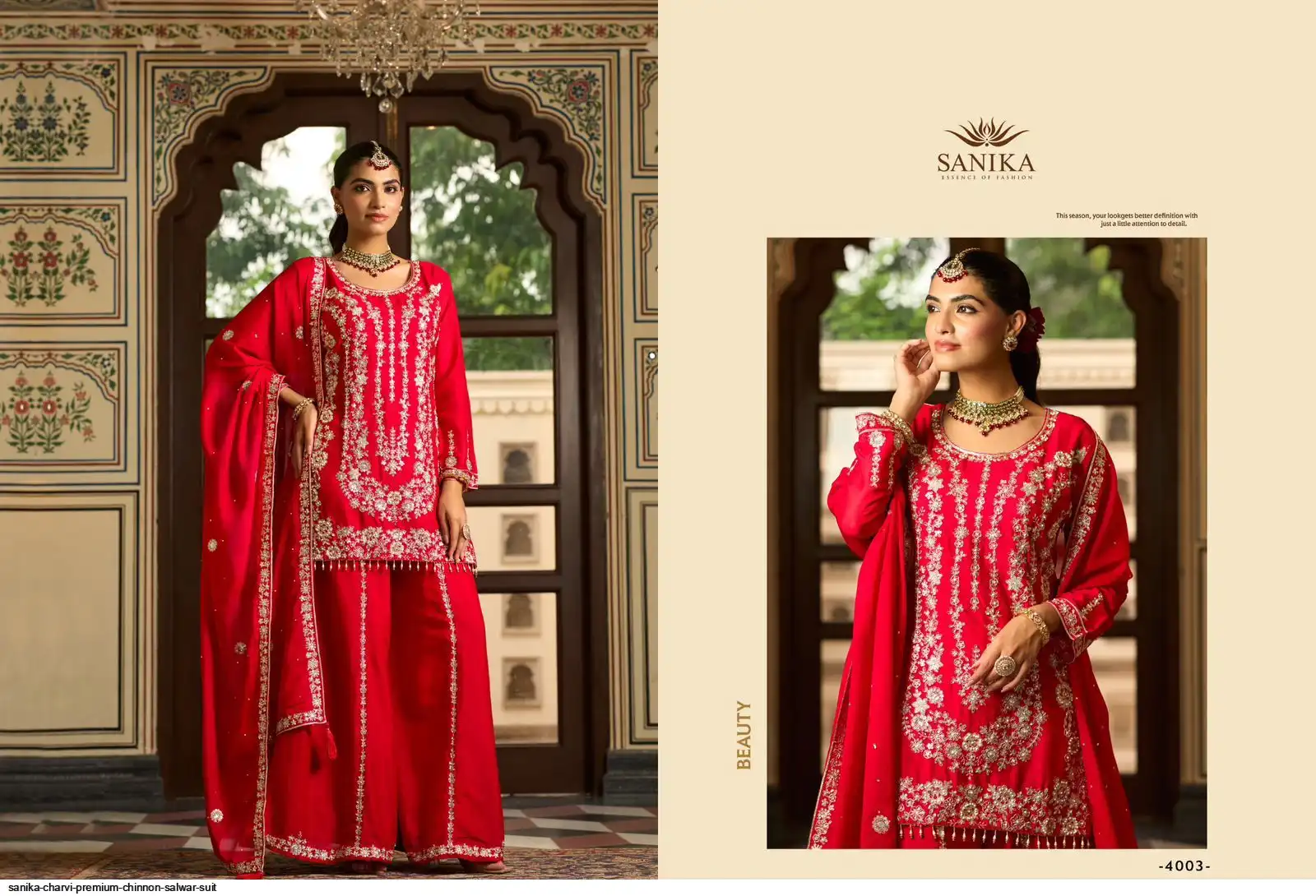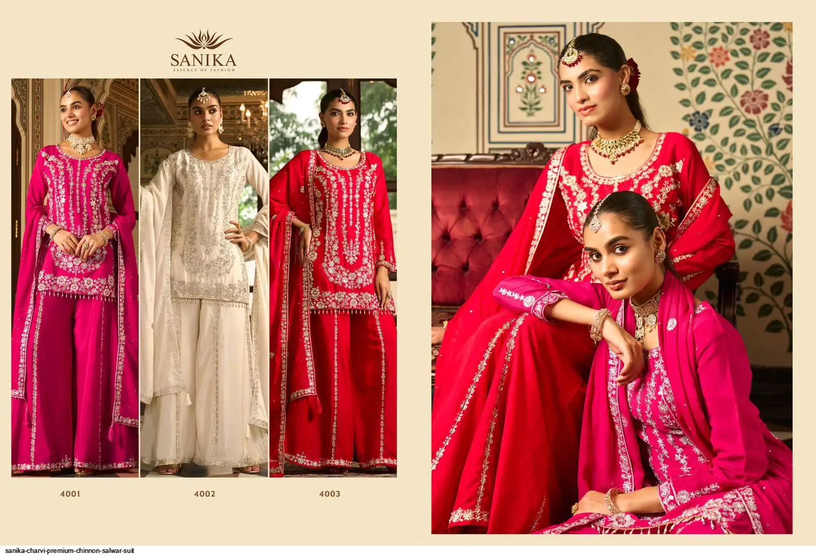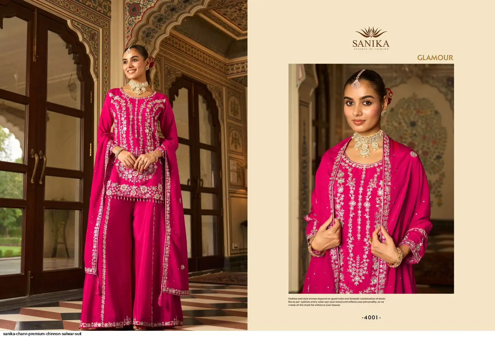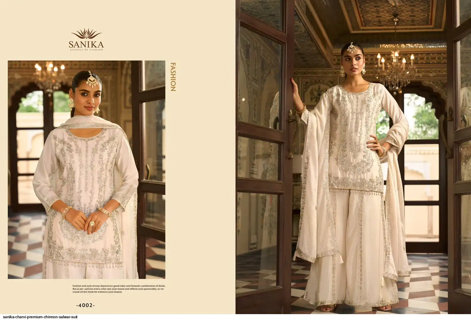 BOTTOM. - PREMIUM CHINON KALI STYLE PLAZO WITH HEAVY EMB AND HAND WORK