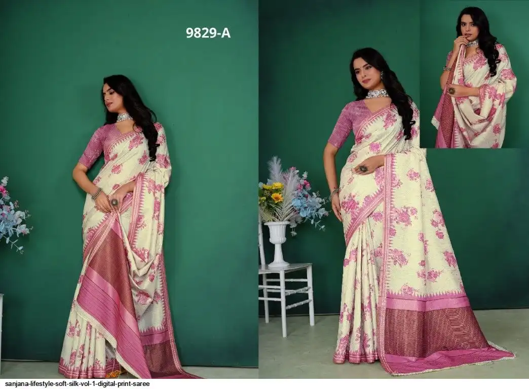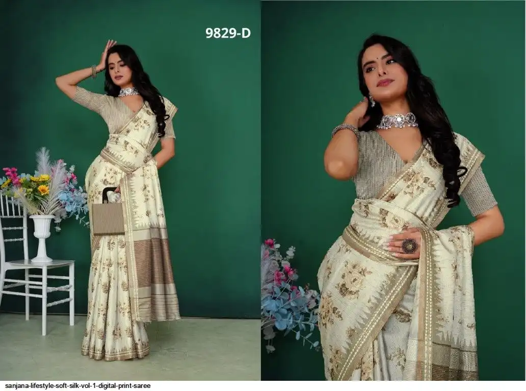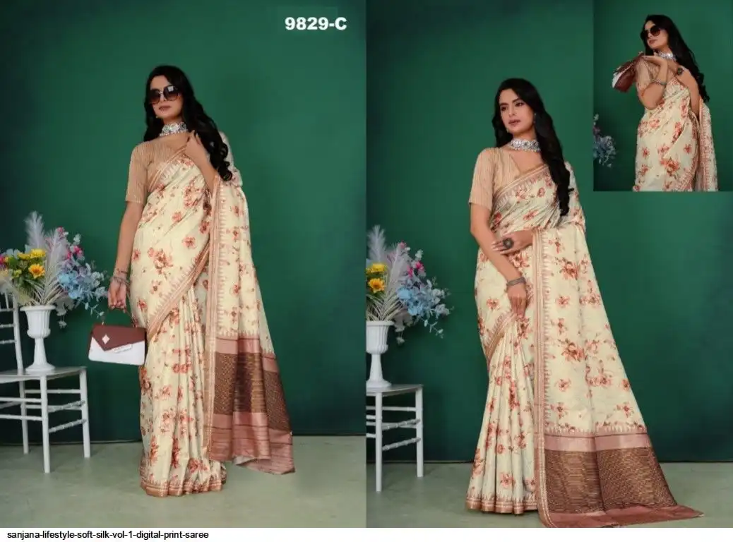 Fabric : Soft Silk With Weaves Digital Print With Rich Golden Zari Weaving with Fancy Latkan Finish