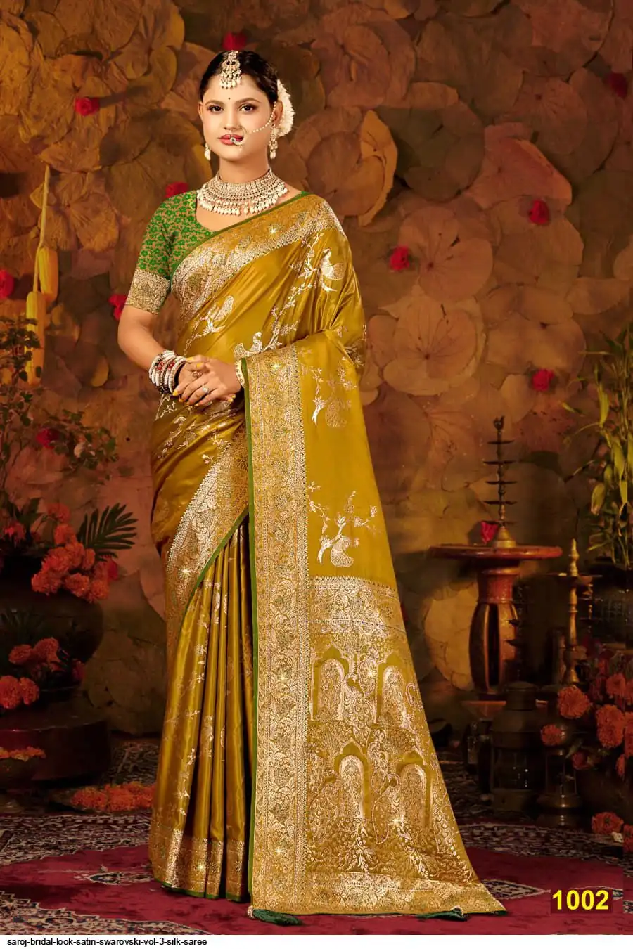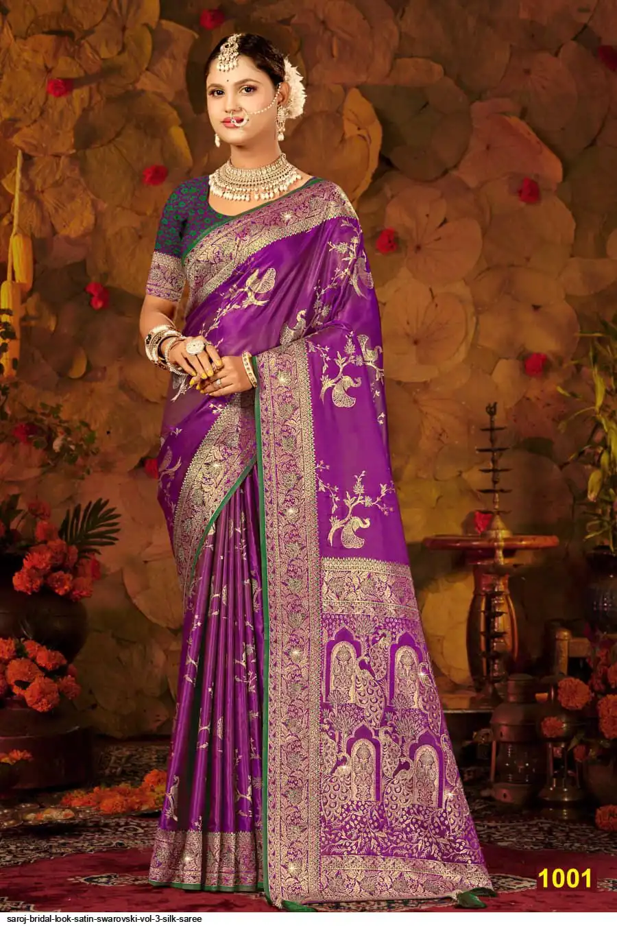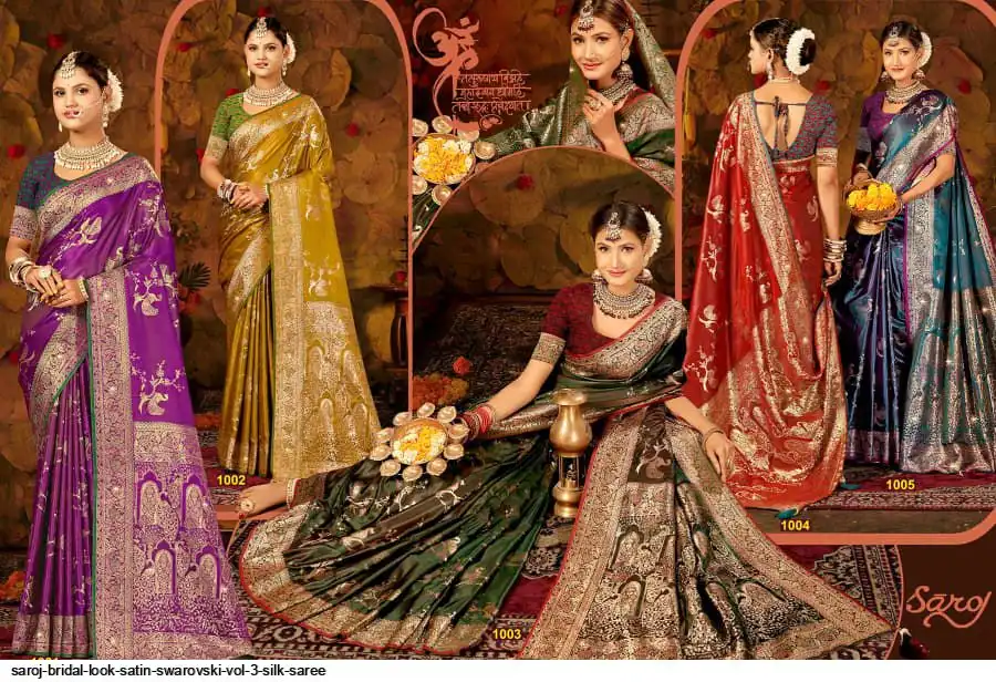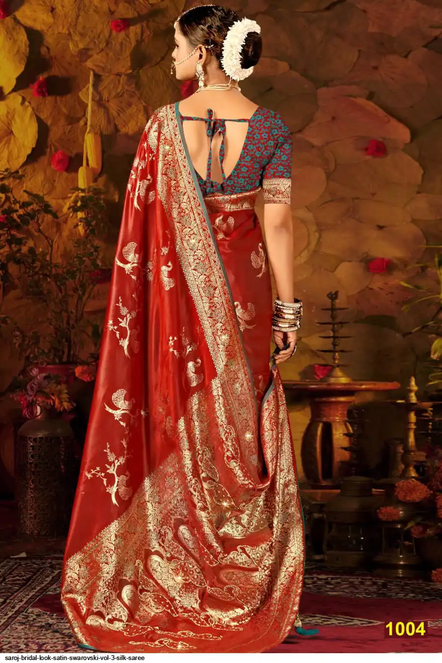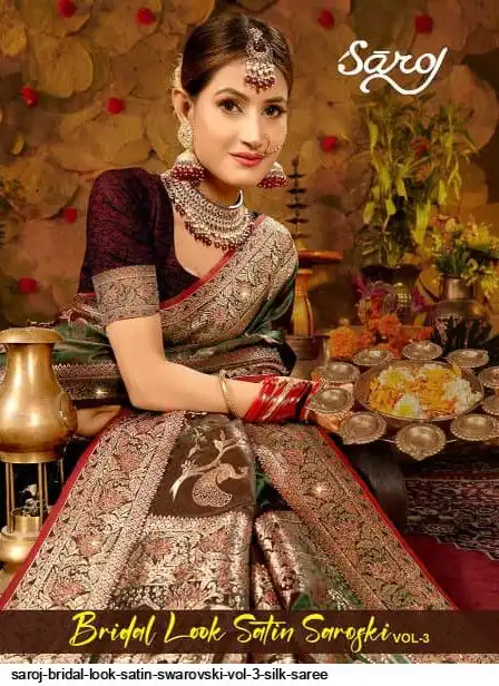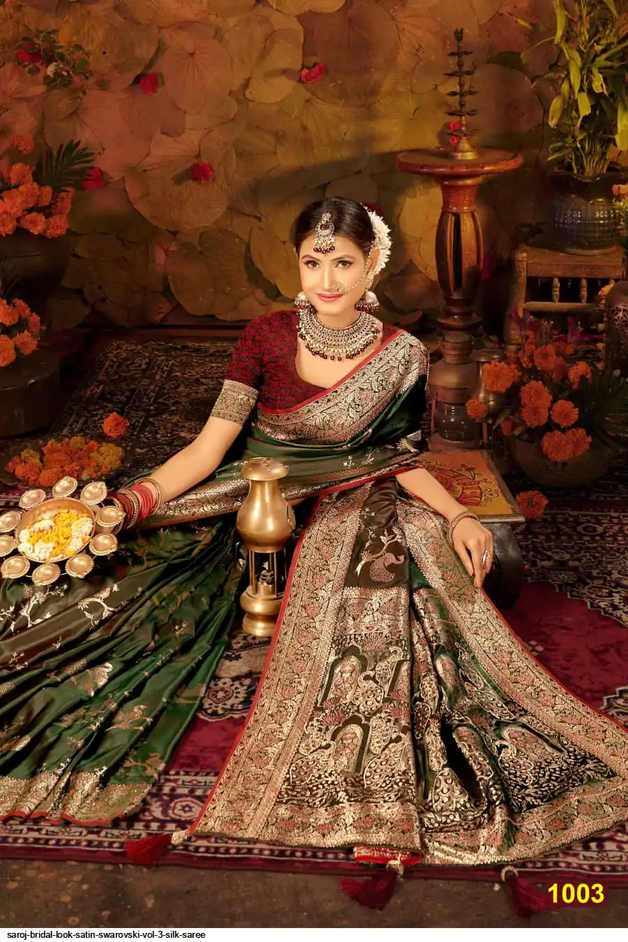 SAROJ BRIDAL LOOK SATIN SWAROVSKI VOL 3 SILK SAREE