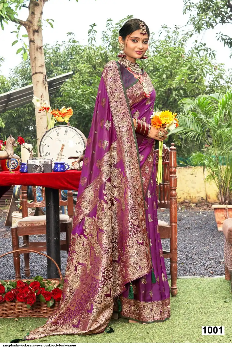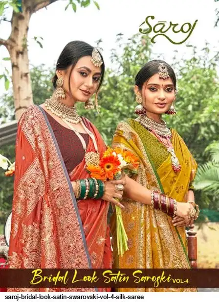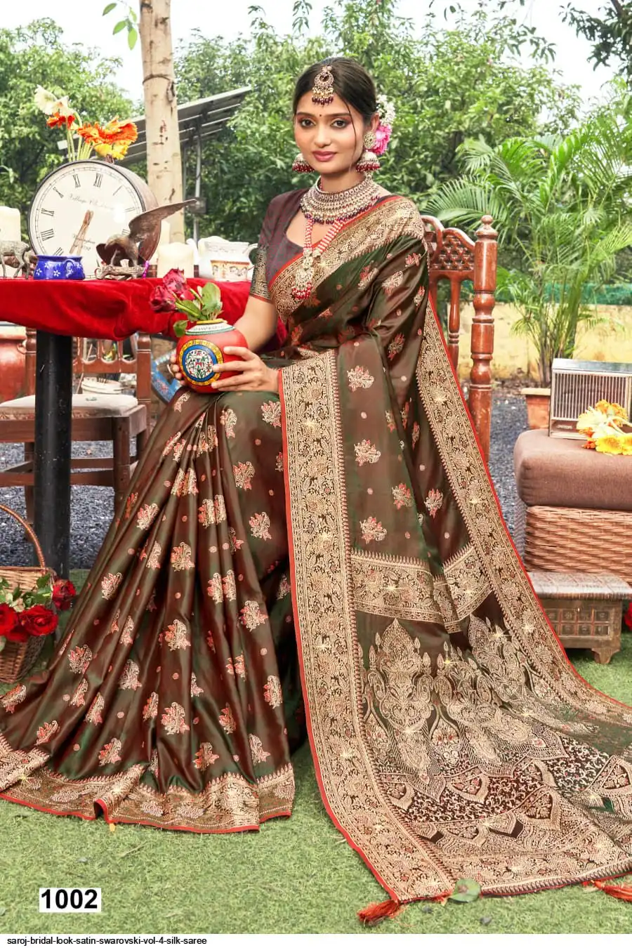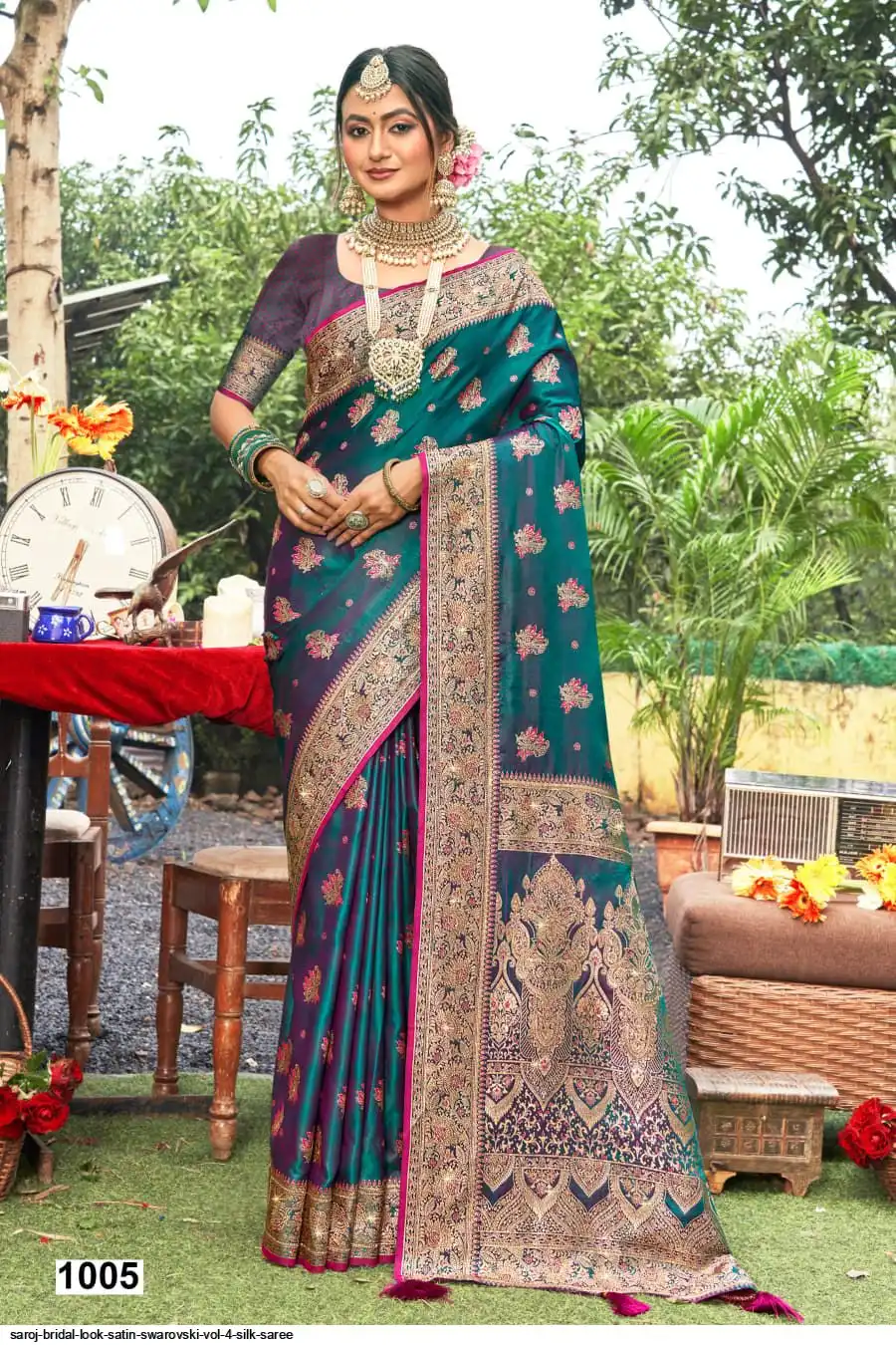 SAROJ BRIDAL LOOK SATIN SWAROVSKI VOL 4 SILK SAREE