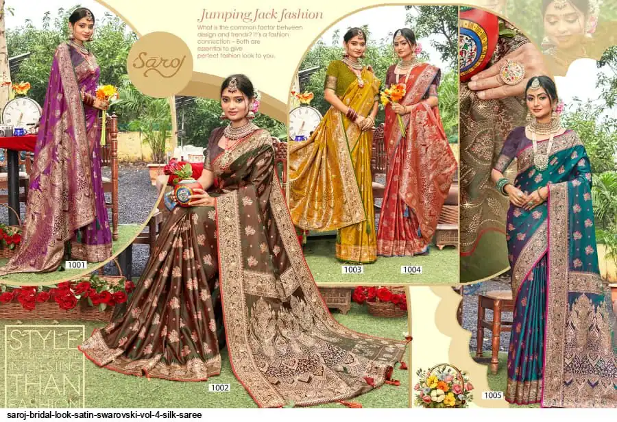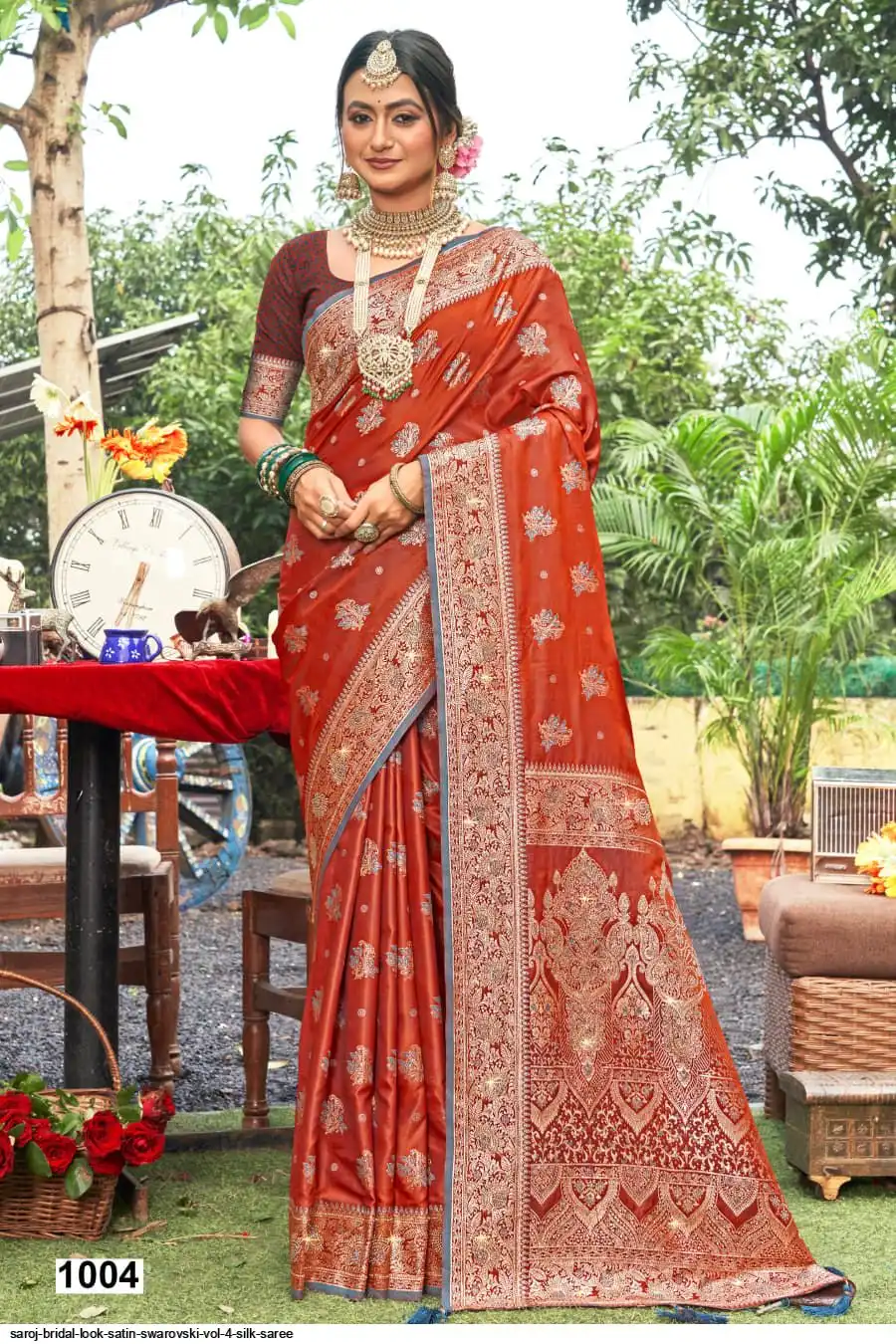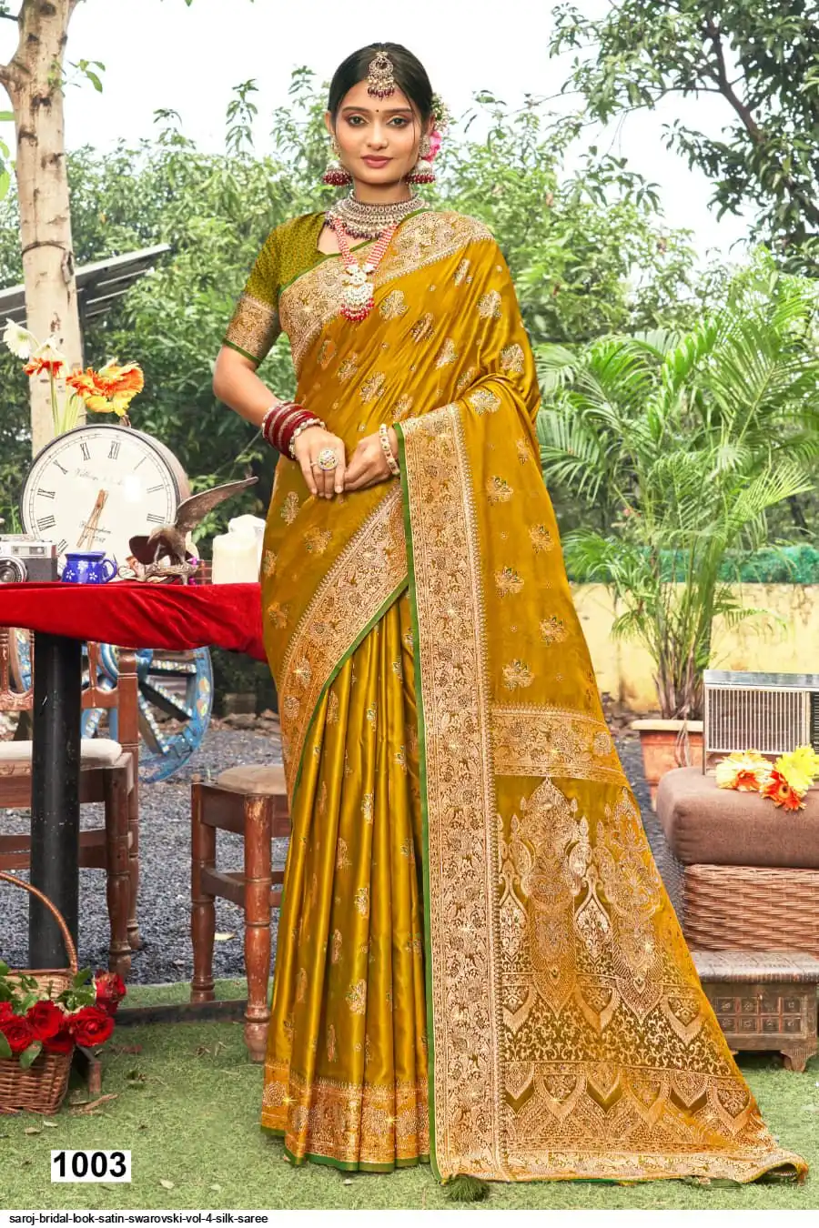 SAROJ BRIDAL LOOK SATIN SWAROVSKI VOL 4 SILK SAREE