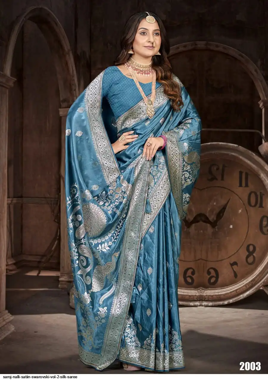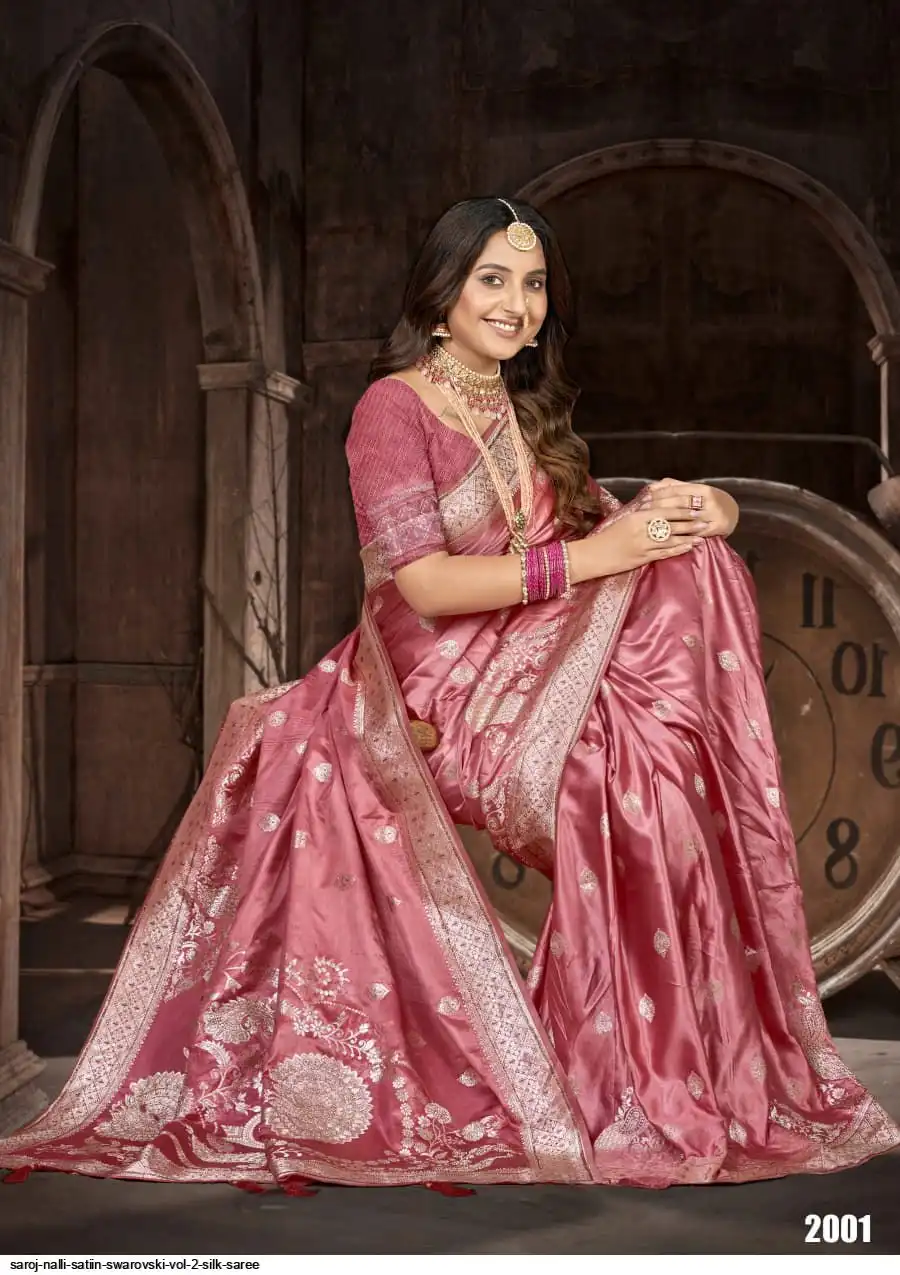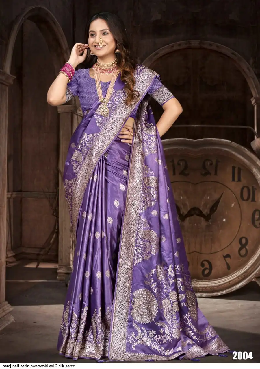 SAROJ NALLI SATIIN SWAROVSKI VOL 2 SILK SAREE