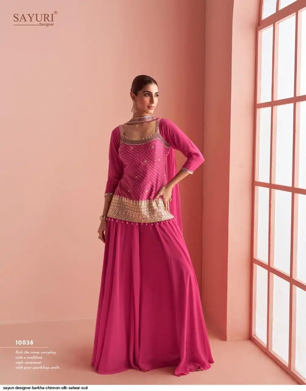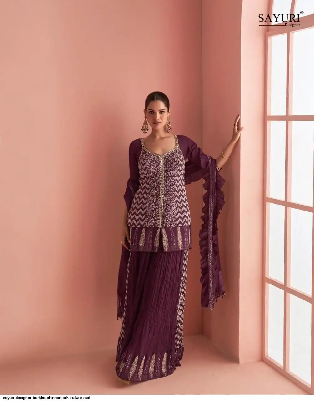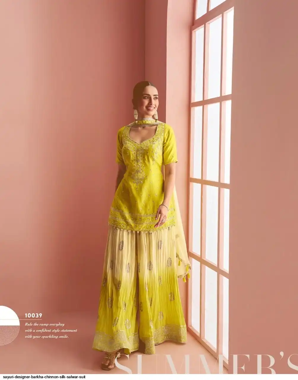 FABRIC - REAL PREMIUM CHINNON SILK / REAL PRIMIUM SILK ( HEAVY EMBROIDERED MIRROR WORK SHORT TOP WITH PLAZZO AND EMBROIDERED DUPATTA)