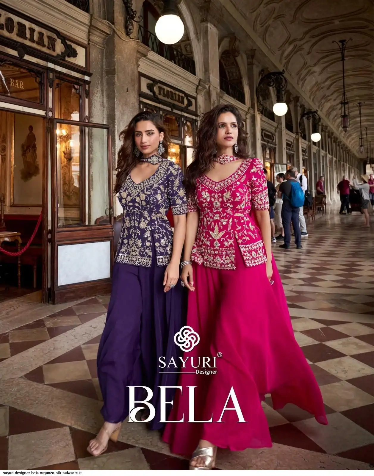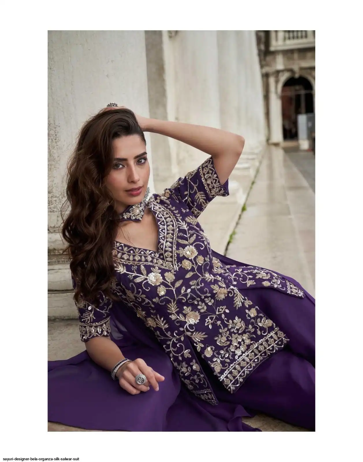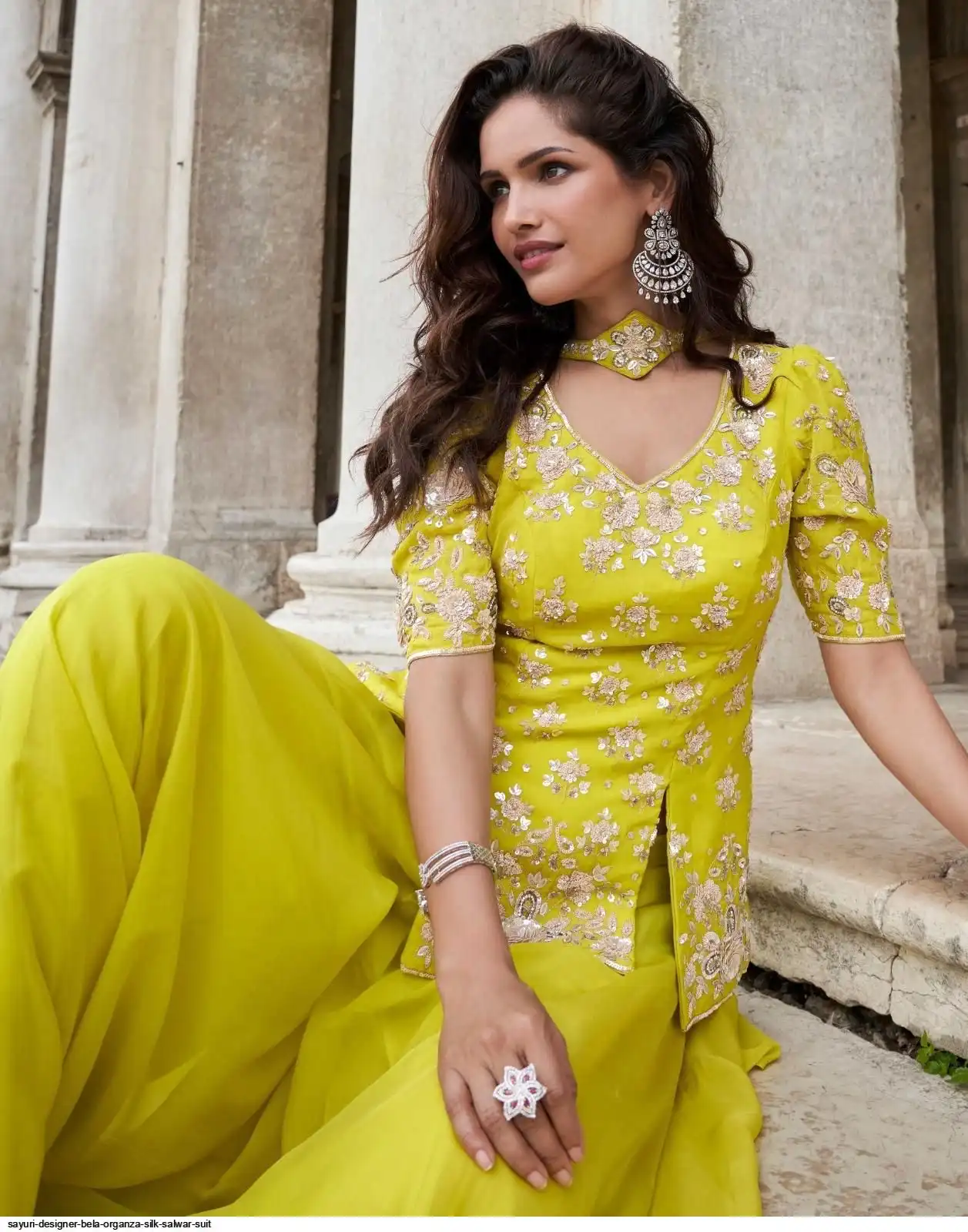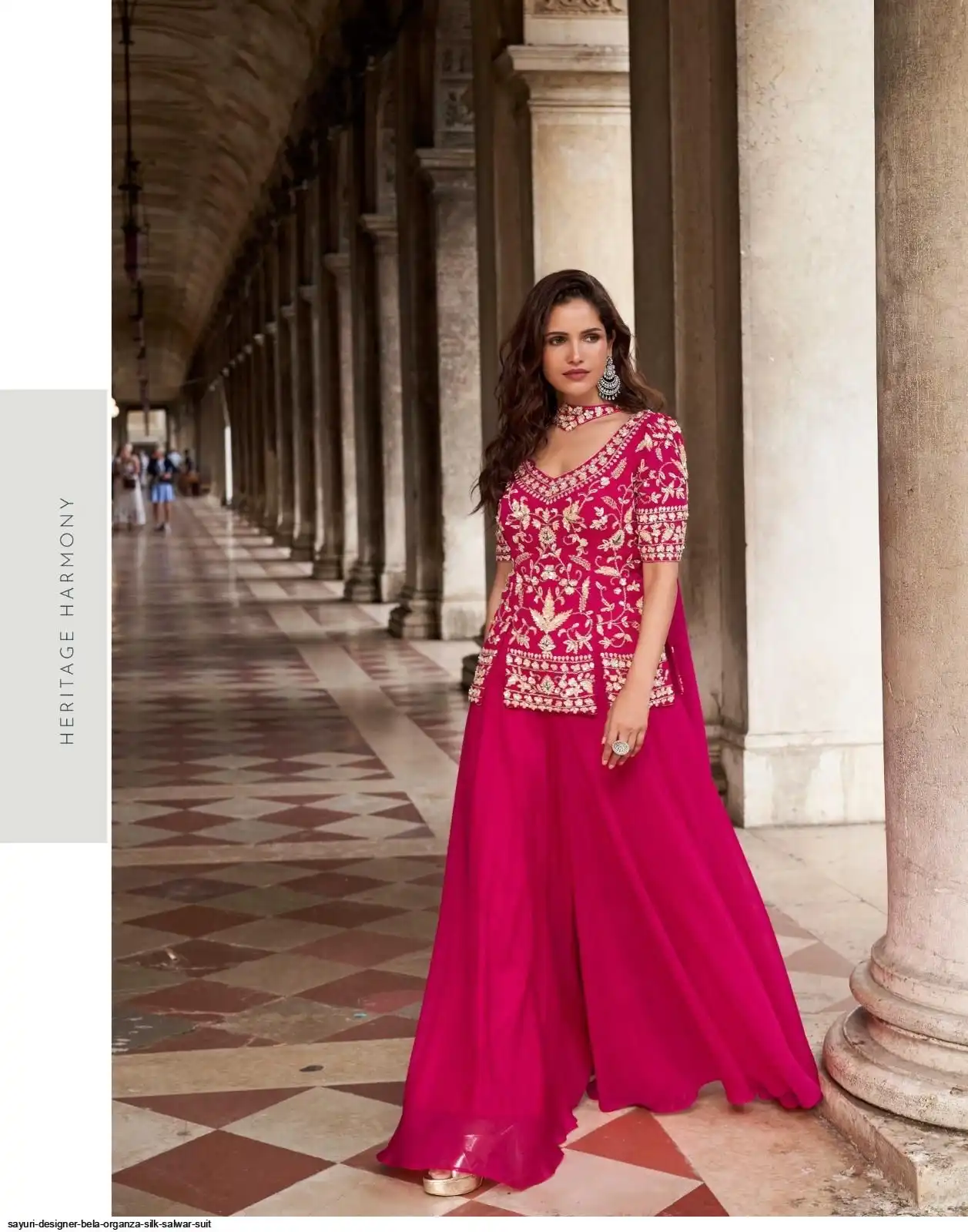 FABRIC - PREMIUM REAL ORGANZA SILK ( TREDY WEDDING LOOK FRONT AND BACK EMBROIDERED TOP WITH PLAZOO AND EMBROIDERED DUPATTA )